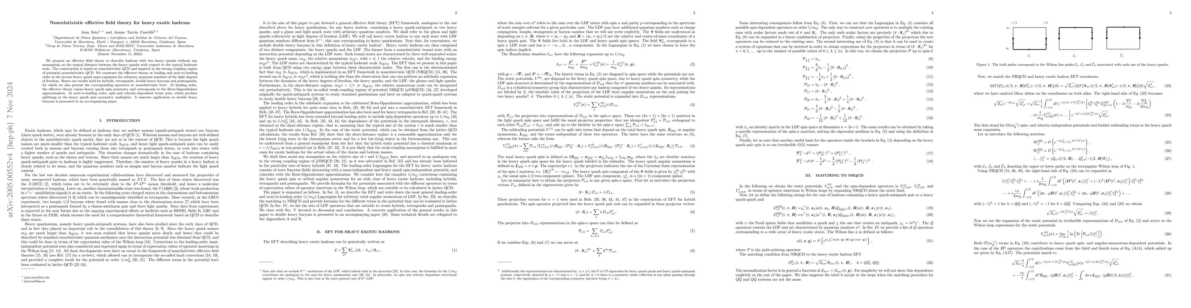 This paper proposes an effective field theory for describing exotic hadrons with two heavy quarks, based on Non-Relativistic QCD, applicable to hybrids, tetraquarks, and double heavy baryons. The theory includes leading and next-to-leading order terms in the inverse heavy-quark mass expansion, revealing spin and velocity dependent effects.