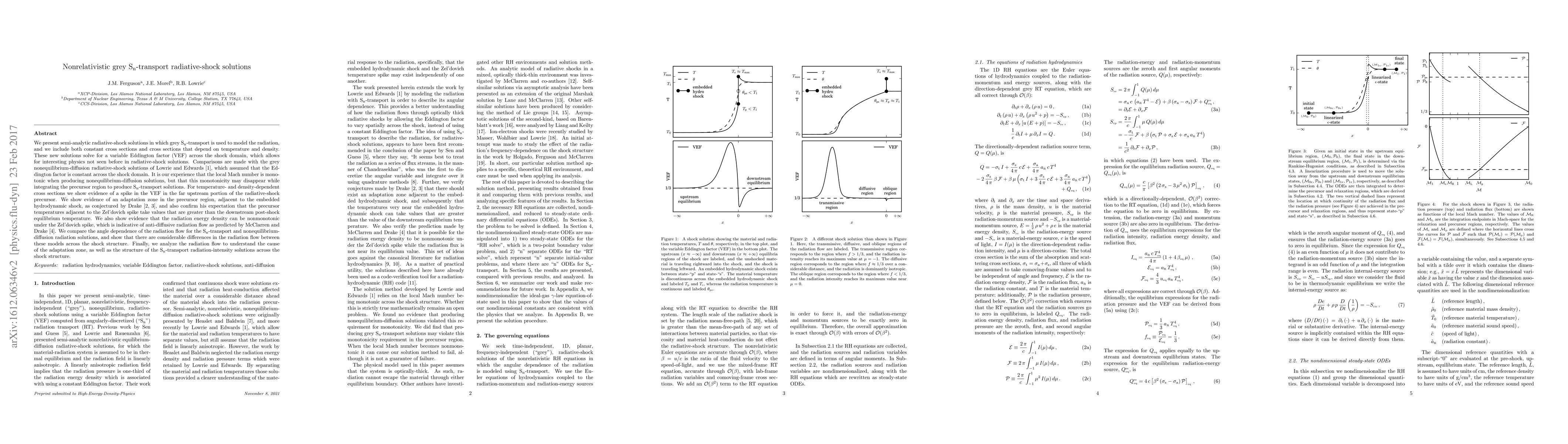 We present semi-analytic radiative-shock solutions in which grey Sn-transport is used to model the radiation, and we include both constant cross sections and cross sections that depend on temperature and density. These new solutions solve for a variable Eddington factor (VEF) across the shock domain, which allows for interesting physics not seen before in radiative-shock solutions. Comparisons are made with the grey nonequilibrium-diffusion radiative-shock solutions of Lowrie and Edwards [1], which assumed that the Eddington factor is constant across the shock domain. It is our experience that the local Mach number is monotonic when producing nonequilibrium-diffusion solutions, but that this monotonicity may disappear while integrating the precursor region to produce Sn-transport solutions. For temperature- and density-dependent cross sections we show evidence of a spike in the VEF in the far upstream portion of the radiative-shock precursor. We show evidence of an adaptation zone in the precursor region, adjacent to the embedded hydrodynamic shock, as conjectured by Drake [2, 3], and also confirm his expectation that the precursor temperatures adjacent to the Zeldovich spike take values that are greater than the downstream post-shock equilibrium temperature. We also show evidence that the radiation energy density can be nonmonotonic under the Zeldovich spike, which is indicative of anti-diffusive radiation flow as predicted by McClarren and Drake [4]. We compare the angle dependence of the radiation flow for the Sn-transport and nonequilibrium-diffusion radiation solutions, and show that there are considerable differences in the radiation flow between these models across the shock structure. Finally, we analyze the radiation flow to understand the cause of the adaptation zone, as well as the structure of the Sn-transport radiation-intensity solutions across the shock structure.