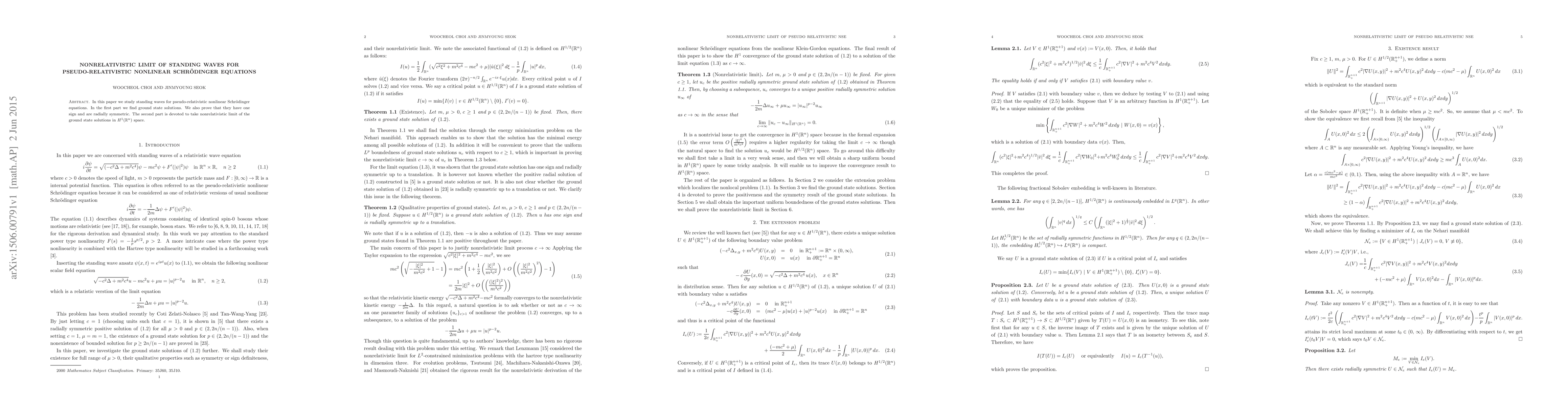 This paper investigates standing waves for pseudo-relativistic nonlinear Schrödinger equations, finding ground state solutions that are one-signed and radially symmetric. The study also examines the nonrelativistic limit of these ground state solutions within the $H^1 (\mathbb{R}^n)$ space.