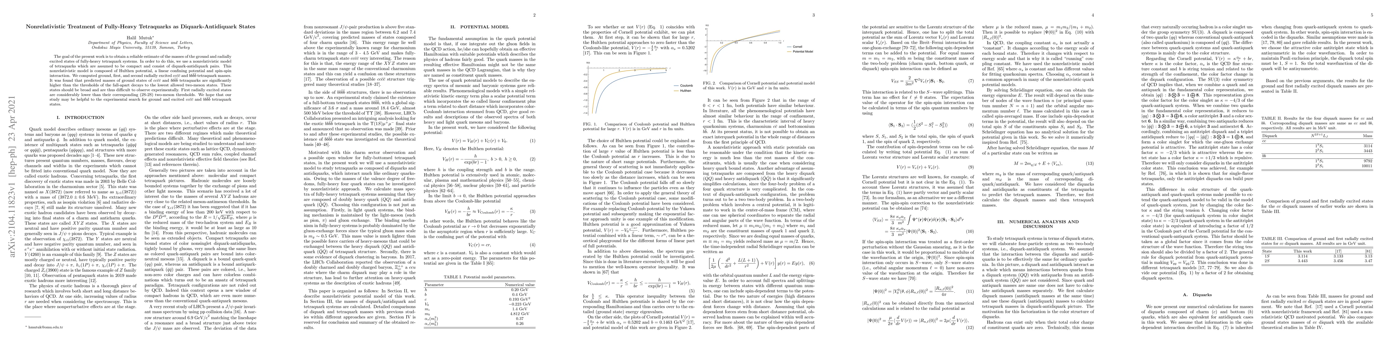 The goal of the present work is to obtain a reliable estimate of the masses of the ground and radially excited states of fully-heavy tetraquark systems. In order to do this, we use a nonrelativistic model of tetraquarks which are assumed to be compact and consist of diquark-antidiquark pairs. This nonrelativistic model is composed of Hulthen potential, a linear confining potential and spin-spin interaction. We computed ground, first, and second radially excited $cc\bar{c}\bar{c}$ and $bb\bar{b}\bar{b}$ tetraquark masses. It was found that predicted masses of ground states of $cc\bar{c}\bar{c}$ and $bb\bar{b}\bar{b}$ tetraquarks are significantly higher than the thresholds of the fall-apart decays to the lowest allowed two-meson states. These states should be broad and are thus difficult to observe experimentally. First radially excited states are considerably lower than their corresponding (2S-2S) two-meson thresholds. We hope that our study may be helpful to the experimental search for ground and excited $cc\bar{c}\bar{c}$ and $bb\bar{b}\bar{b}$ tetraquark states.