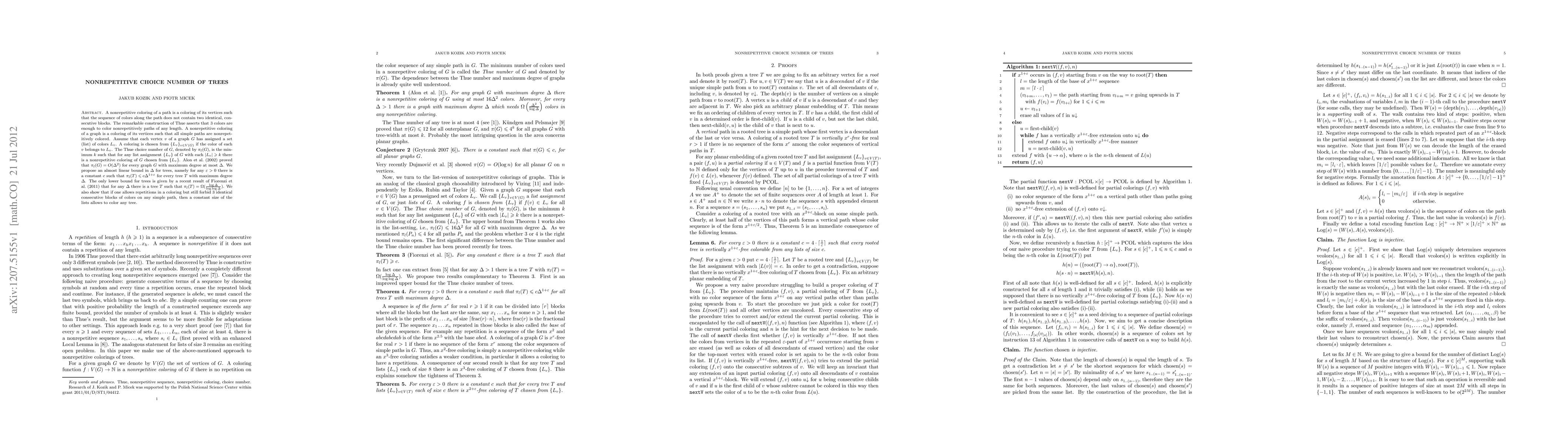 This paper explores the nonrepetitive choice number of trees, focusing on colorings where paths do not have identical consecutive blocks. It proposes that for any tree with maximum degree Δ, the Thue choice number π_l(T) is bounded almost linearly by cΔ^(1+ε) for any ε > 0, improving upon the O(Δ^2) bound for general graphs.