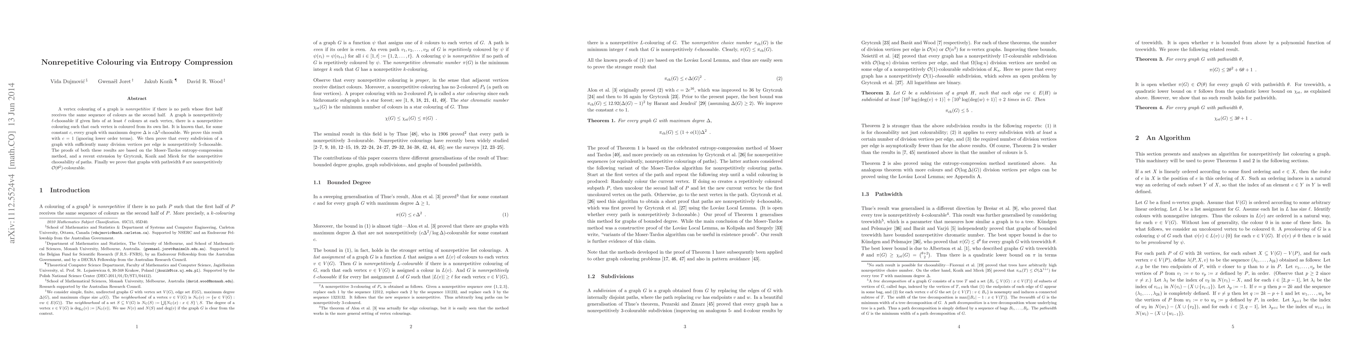 This paper explores nonrepetitive vertex colouring of graphs, proving that every graph with maximum degree $\Delta$ is $1\Delta^2$-choosable and that every sufficiently subdivided graph is nonrepetitively 5-choosable, using the entropy-compression method.
