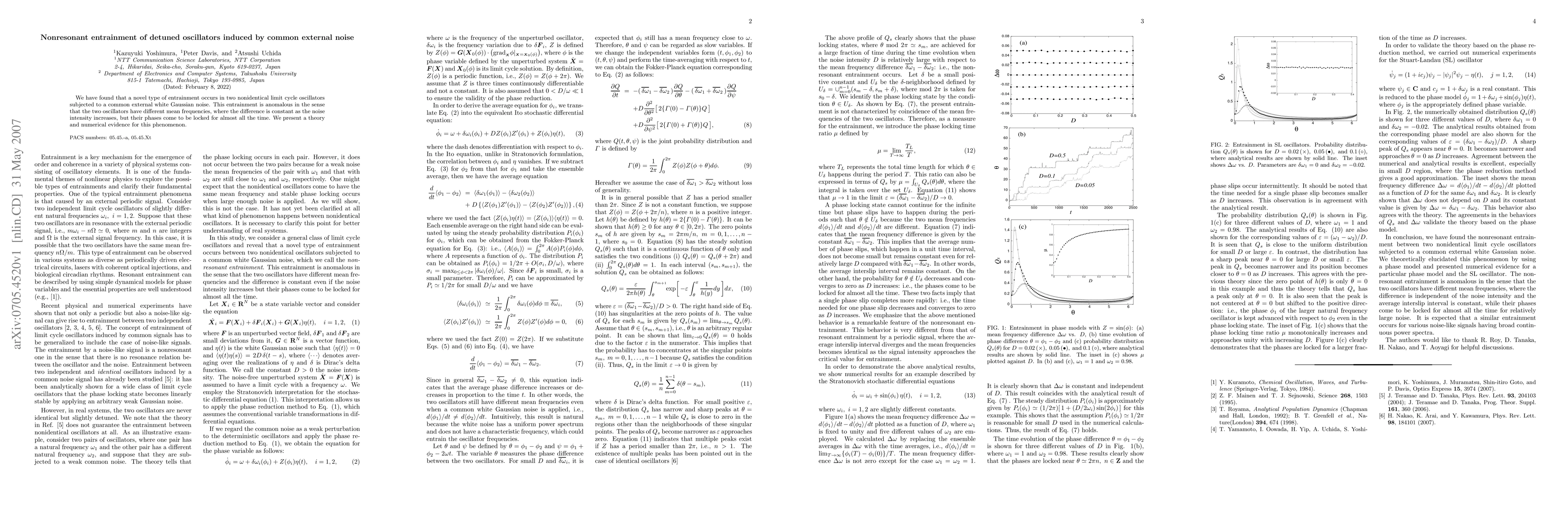 Summary: This paper explores a unique form of entrainment in nonidentical oscillators exposed to common external noise, where despite differing mean frequencies, the oscillators' phases synchronize as noise intensity increases. The study provides both theoretical and numerical evidence for this phenomenon.
