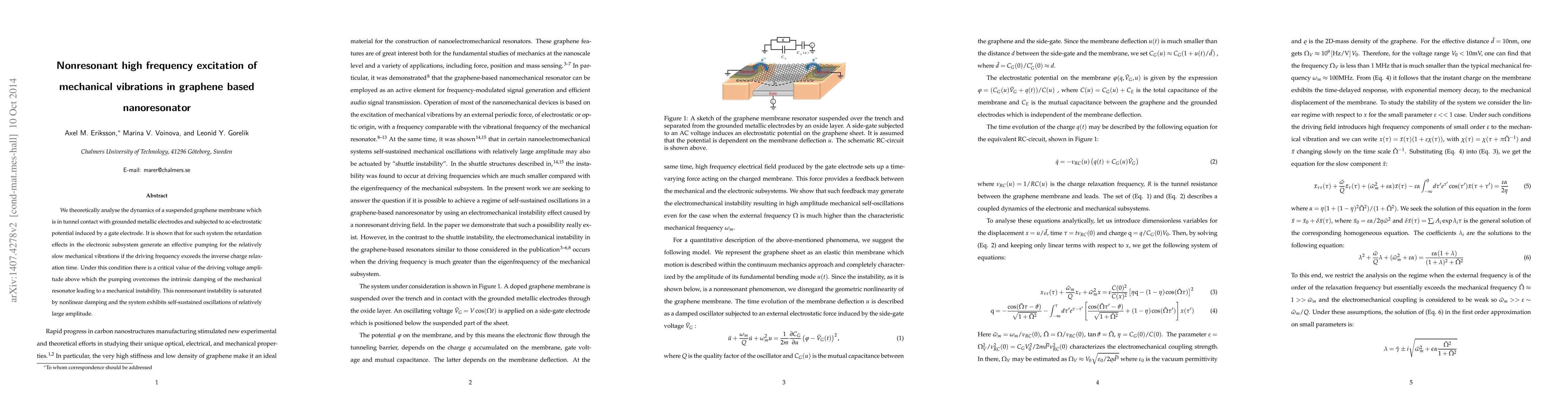 This paper theoretically analyzes the dynamics of a graphene membrane in tunnel contact with metallic electrodes, showing that high-frequency ac-electrostatic potential induces effective pumping for mechanical vibrations, leading to self-sustained oscillations and mechanical instability when the driving voltage exceeds a critical amplitude. Nonlinear damping saturates the instability.