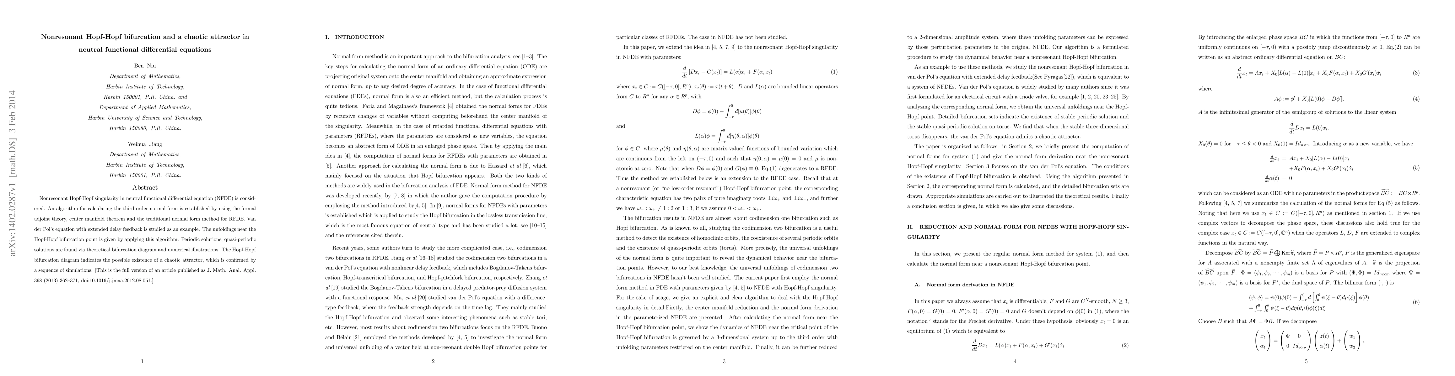 This paper investigates nonresonant Hopf-Hopf bifurcation in neutral functional differential equations (NFDE) and develops an algorithm to calculate the third-order normal form. It applies this to Van der Pol's equation with extended delay feedback, revealing periodic and quasi-periodic solutions, and suggests the potential existence of a chaotic attractor through simulations.