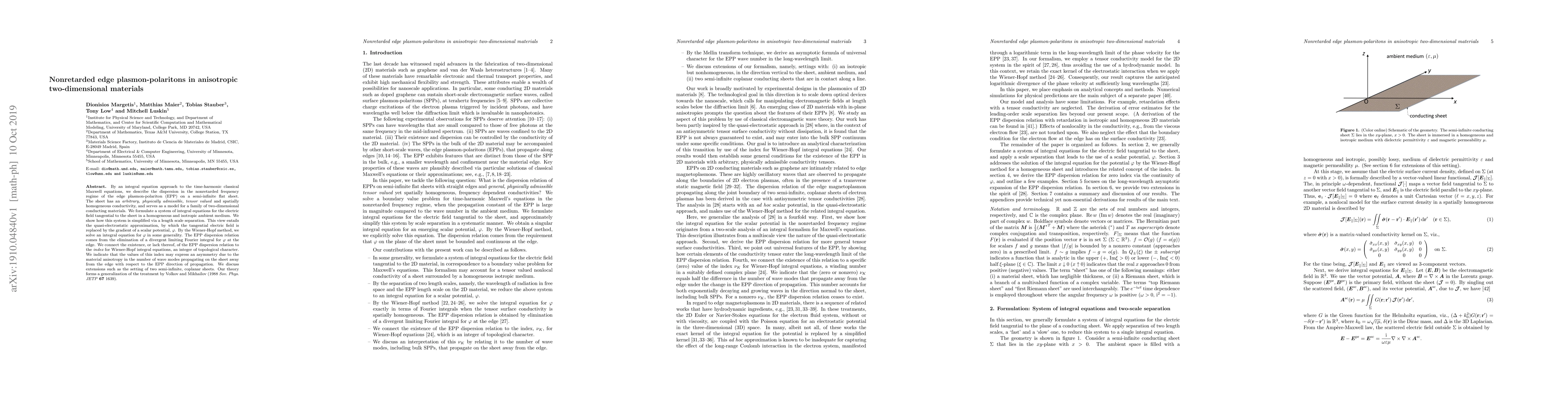 Researchers developed a theory to describe nonretarded edge plasmon-polaritons in anisotropic 2D materials, revealing the existence of dispersion relations dependent on material properties and topological character.