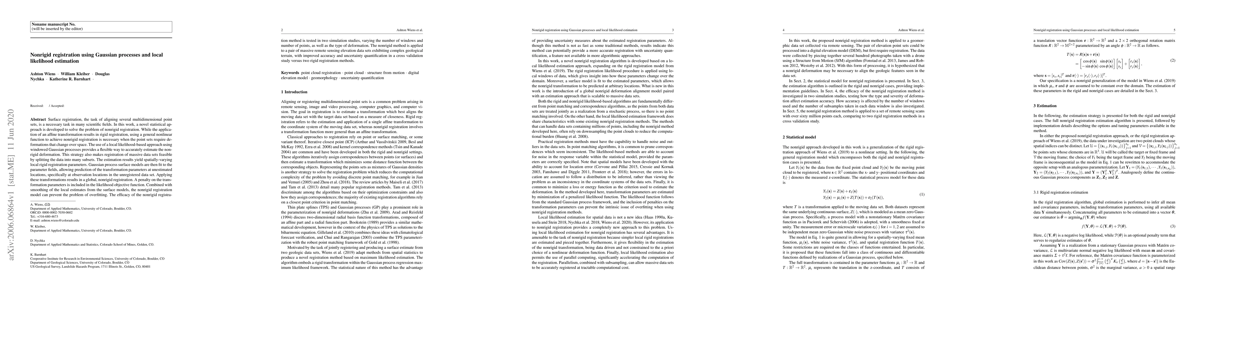 This paper proposes a novel statistical approach for nonrigid registration using Gaussian processes and local likelihood estimation to align multidimensional point sets. The method employs windowed Gaussian processes for flexible, spatially-varying local rigid registration, enabling accurate transformation parameter estimation and preventing overfitting through smoothing and penalization.
