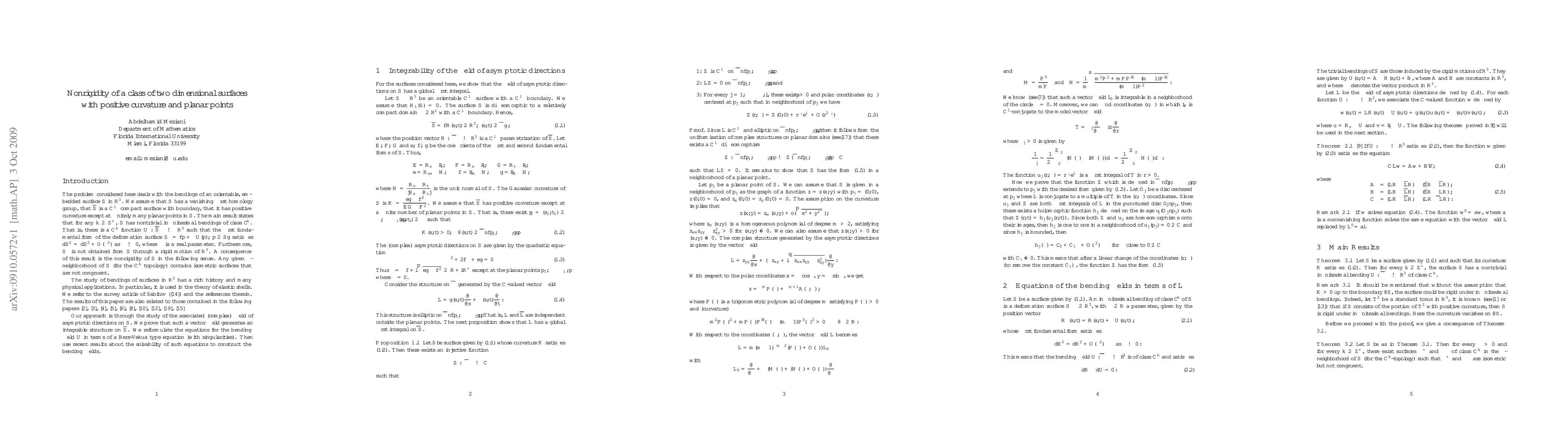 Researchers constructed nontrivial infinitesimal bendings for a class of 2D surfaces with positive curvature, leading to a nonrigidity result for such surfaces.