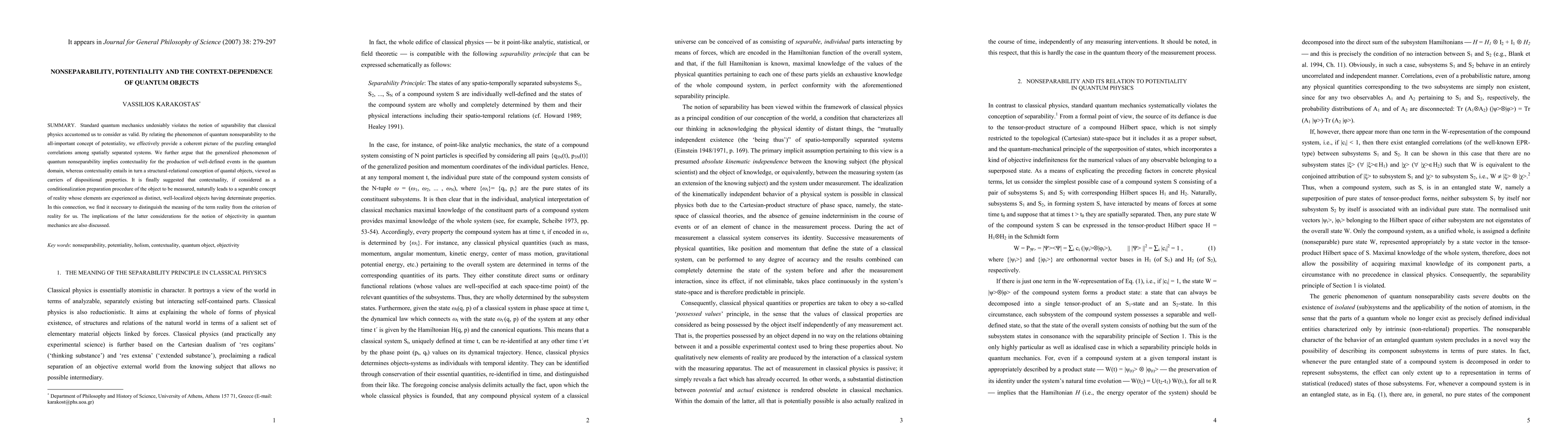 Standard quantum mechanics undeniably violates the notion of separability that classical physics accustomed us to consider as valid. By relating the phenomenon of quantum nonseparability to the all-important concept of potentiality, we effectively provide a coherent picture of the puzzling entangled correlations among spatially separated systems. We further argue that the generalized phenomenon of quantum nonseparability implies contextuality for the production of well-defined events in the quantum domain, whereas contextuality entails in turn a structural-relational conception of quantal objects, viewed as carriers of dispositional properties. It is finally suggested that contextuality, if considered as a conditionalization preparation procedure of the object to be measured, naturally leads to a separable concept of reality whose elements are experienced as distinct, well-localized objects having determinate properties. In this connection, we find it necessary to distinguish the meaning of the term reality from the criterion of reality for us. The implications of the latter considerations for the notion of objectivity in quantum mechanics are also discussed.