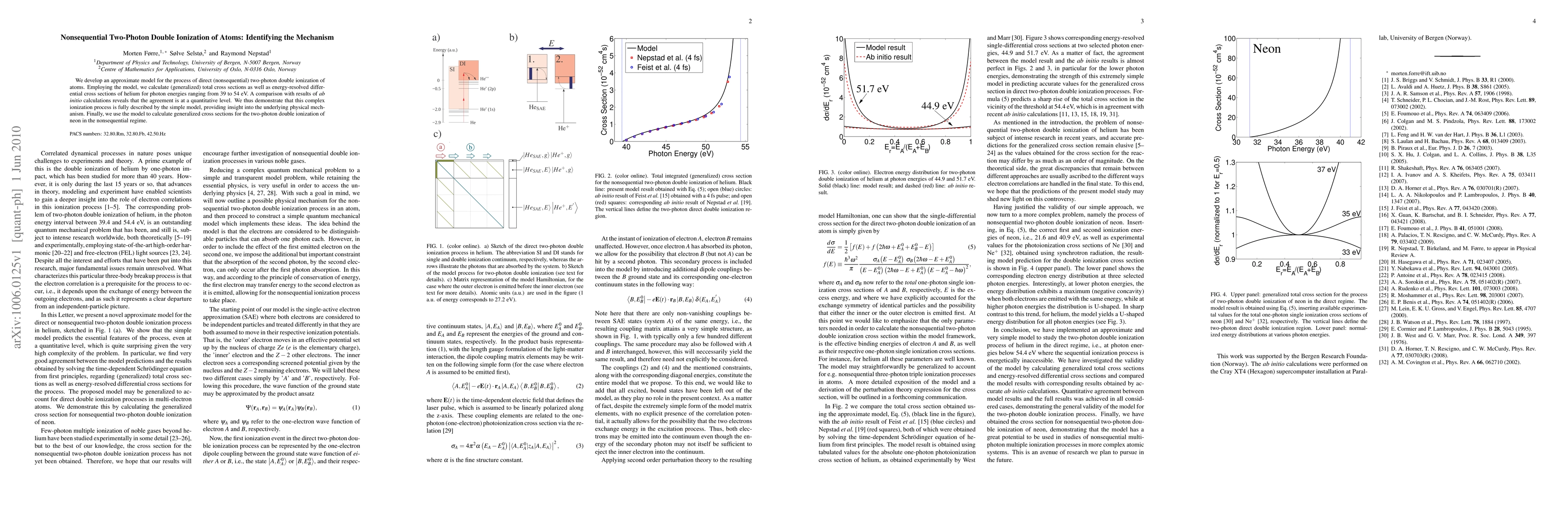 This paper develops an approximate model to describe nonsequential two-photon double ionization of atoms, showing good agreement with ab initio calculations for helium. The model provides insight into the underlying mechanism and extends its application to neon.