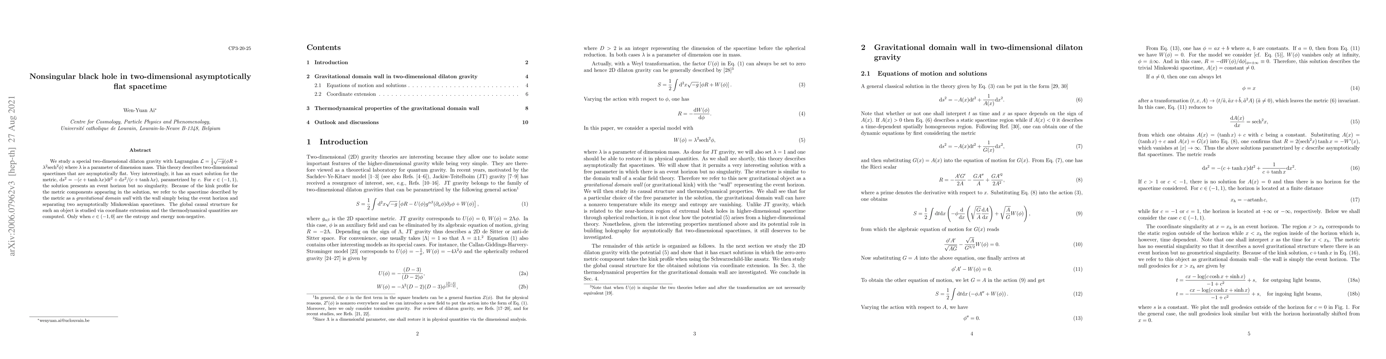 Researchers discovered a new type of black hole in two-dimensional spacetime that has an event horizon but no singularity, creating a 'gravitational domain wall' separating asymptotically flat regions.