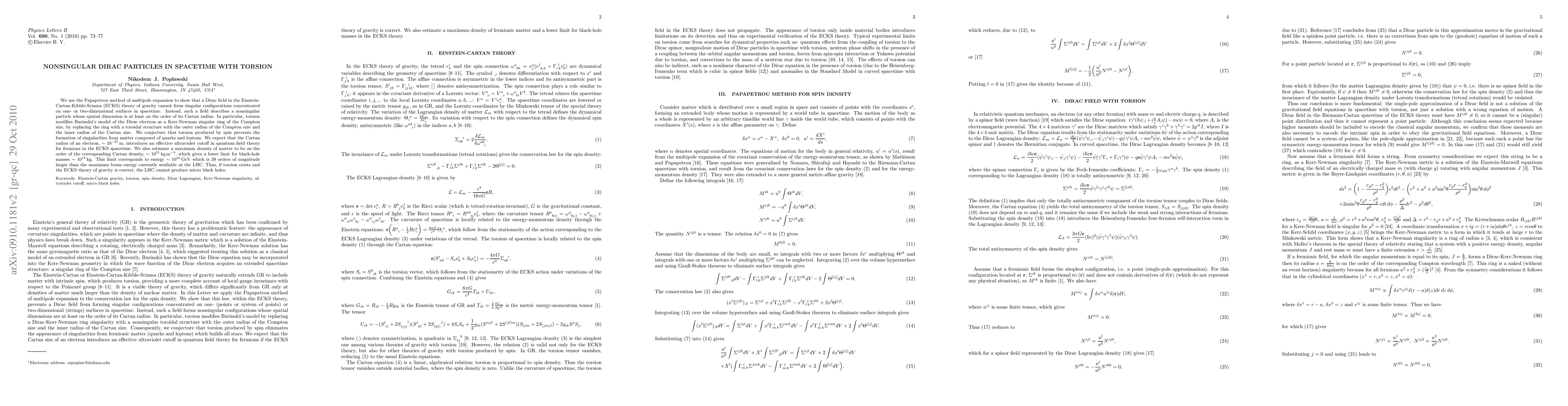 Researchers show that a Dirac field in Einstein-Cartan-Kibble-Sciama spacetime cannot form singularities, instead describing a nonsingular particle with a spatial dimension related to its Cartan radius, potentially introducing an ultraviolet cutoff in quantum field theory.