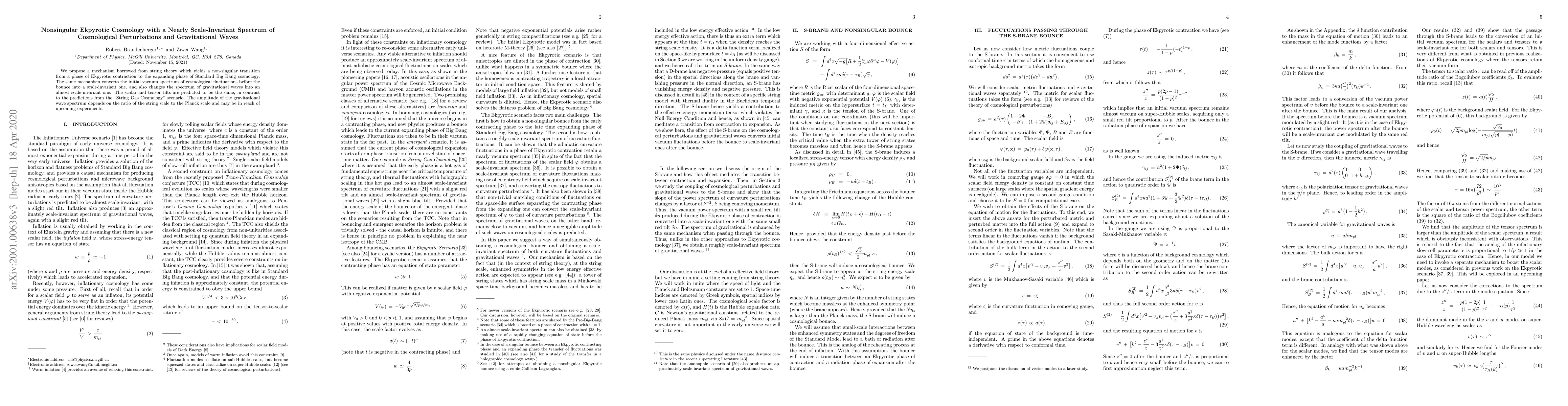 This paper proposes a nonsingular Ekpyrotic cosmology mechanism from string theory that transitions smoothly from contraction to expansion, generating a nearly scale-invariant spectrum for both cosmological perturbations and gravitational waves, with the scalar and tensor tilts predicted to be equal. The amplitude of the gravitational wave spectrum is potentially detectable in future experiments.