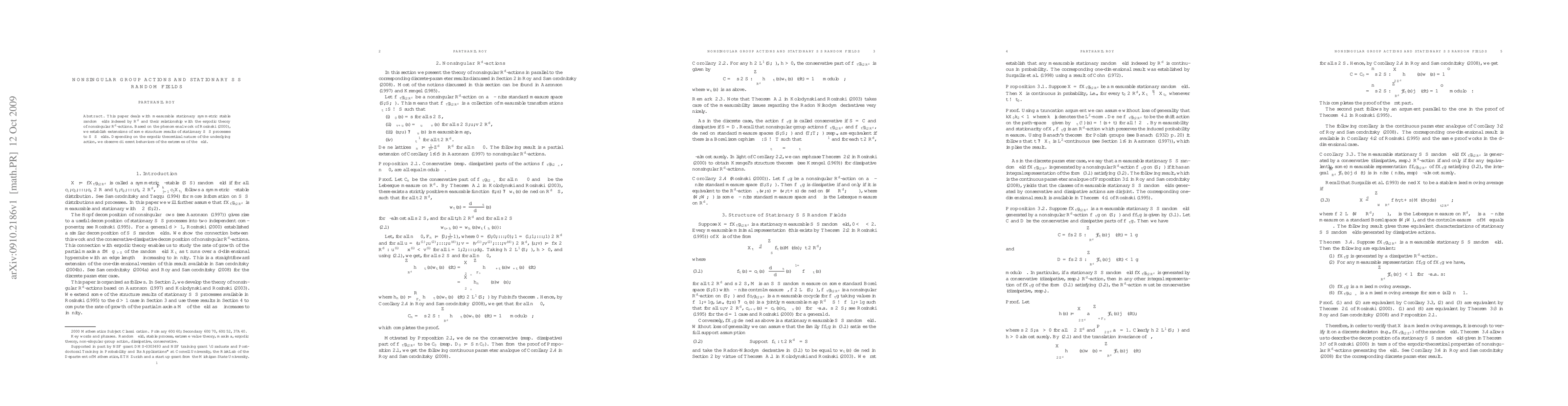 This paper explores the connection between stationary symmetric stable random fields and the ergodic theory of nonsingular group actions, extending structure results from S\alpha S processes to S\alpha S fields, and reveals varying extreme behaviors based on the ergodic nature of the underlying action.