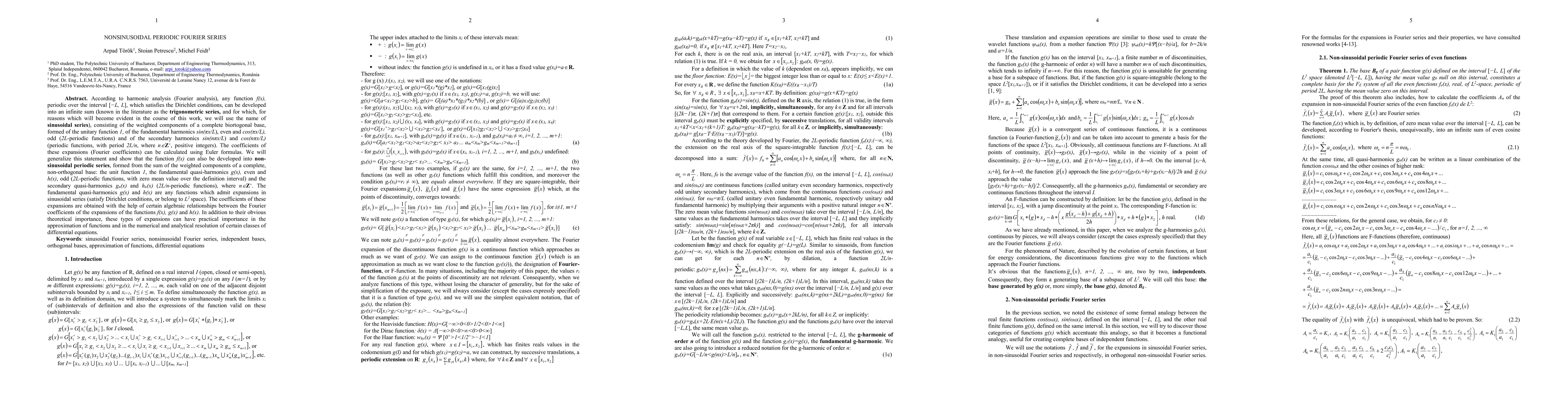 This paper generalizes harmonic analysis to show that a periodic function can be represented as a non-sinusoidal periodic series using a new type of orthogonal base, with potential practical applications in approximation and differential equation resolution.