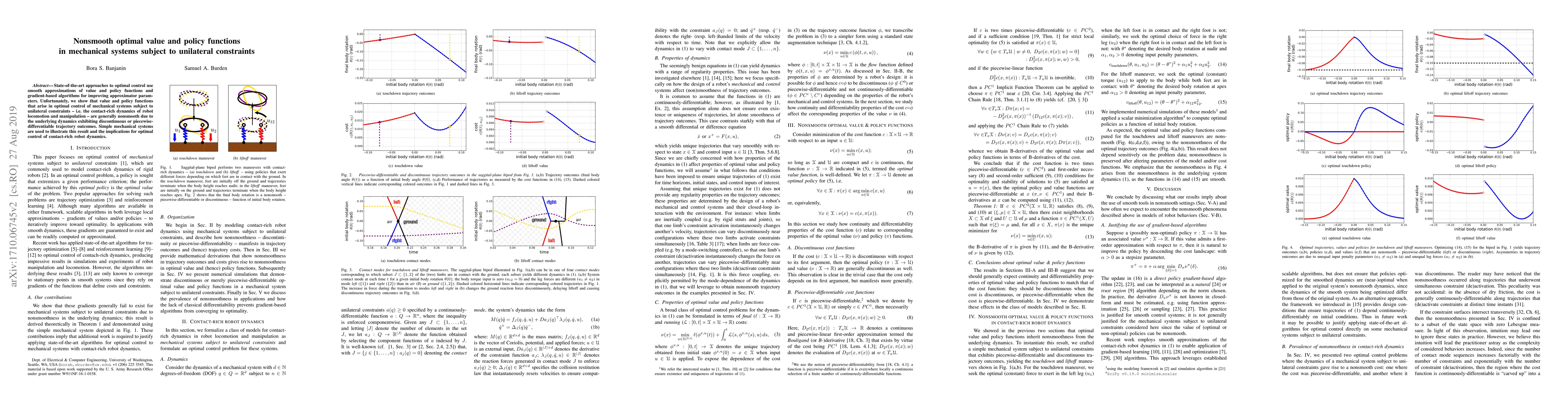 This paper demonstrates that optimal value and policy functions in mechanical systems with unilateral constraints, such as those found in robot locomotion and manipulation, are typically nonsmooth due to discontinuous dynamics. It highlights the limitations of gradient-based methods and suggests the need for alternative approaches to optimal control in such systems.