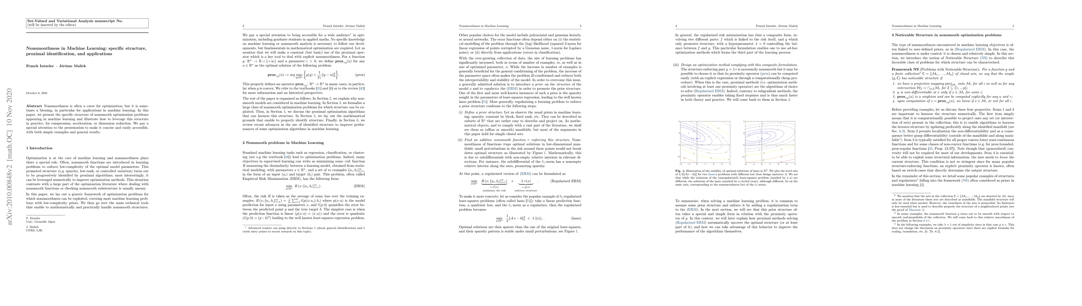 Nonsmoothness is often a curse for optimization; but it is sometimes a blessing, in particular for applications in machine learning. In this paper, we present the specific structure of nonsmooth optimization problems appearing in machine learning and illustrate how to leverage this structure in practice, for compression, acceleration, or dimension reduction. We pay a special attention to the presentation to make it concise and easily accessible, with both simple examples and general results.
