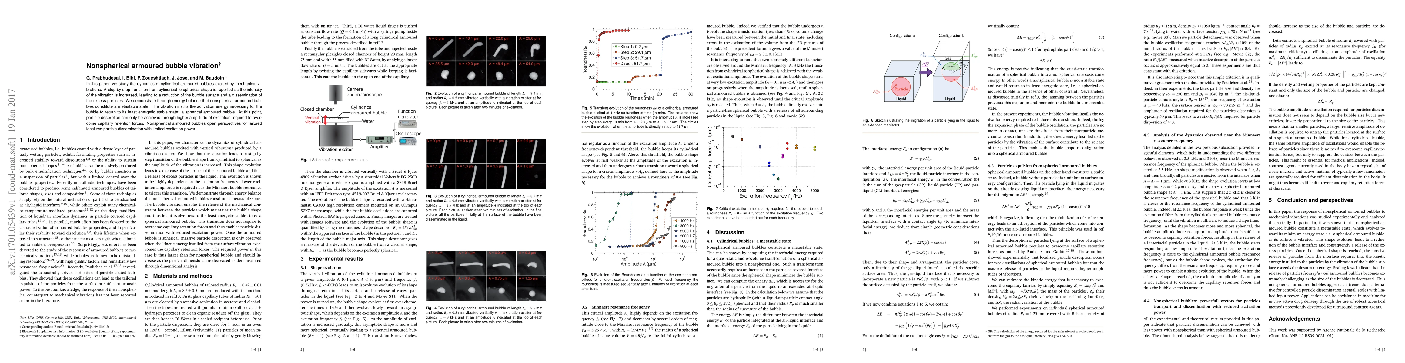Researchers study how mechanical vibrations cause cylindrical armoured bubbles to transform into spherical ones, leading to a metastable state that can be overcome with higher amplitude excitation, allowing for tailored localized particle dissemination.