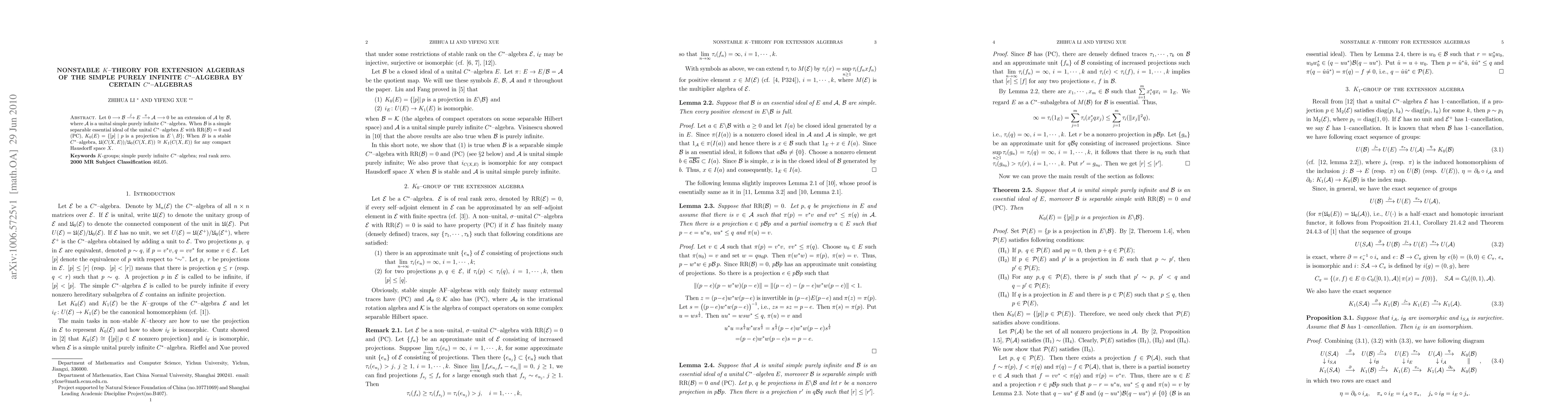Let $0\longrightarrow \B\stackrel{j}{\longrightarrow}E\stackrel{\pi}{\longrightarrow}\A\longrightarrow 0$ be an extension of $\A$ by $\B$, where $\A$ is a unital simple purely infinite $C^{*}$--algebra. When $\B$ is a simple separable essential ideal of the unital $C^{*}$--algebra $E$ with $\RR(\B)=0$ and {\rm(PC)}, $K_{0}(E)=\{[p]\mid p$ is a projection in $E\setminus B\}$; When $B$ is a stable $C^{*}$--algebra, $\U(C(X,E))/\U_0(C(X,E))\cong K_1(C(X,E))$ for any compact Hausdorff space $X$.