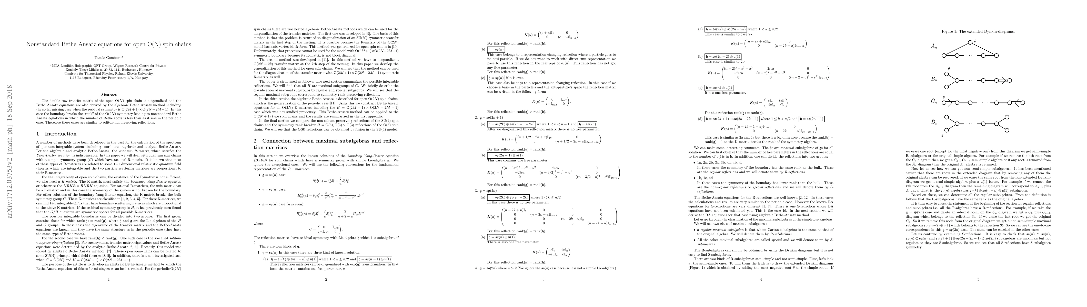 The double row transfer matrix of the open O(N) spin chain is diagonalized and the Bethe Ansatz equations are also derived by the algebraic Bethe Ansatz method including the so far missing case when the residual symmetry is O(2M+1)$\times$O(2N-2M-1). In this case the boundary breaks the "rank" of the O(2N) symmetry leading to nonstandard Bethe Ansatz equations in which the number of Bethe roots is less than as it was in the periodic case. Therefore these cases are similar to soliton-nonpreserving reflections.