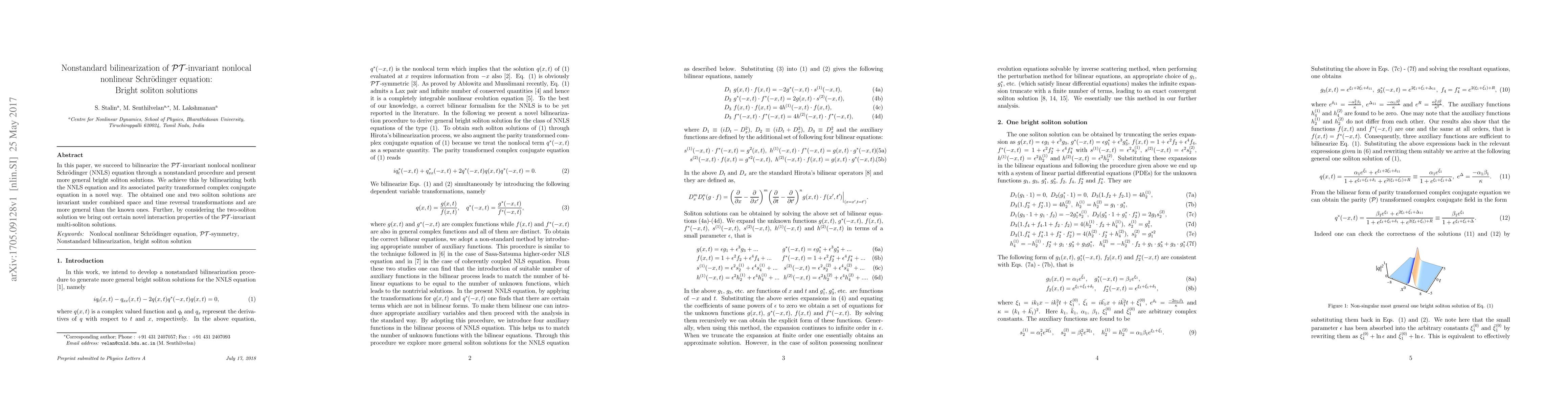 In this paper, we succeed to bilinearize the $\cal{PT}$-invariant nonlocal nonlinear Schr\"{o}dinger (NNLS) equation through a nonstandard procedure and present more general bright soliton solutions. We achieve this by bilinearizing both the NNLS equation and its associated parity transformed complex conjugate equation in a novel way. The obtained one and two soliton solutions are invariant under combined space and time reversal transformations and are more general than the known ones. Further, by considering the two-soliton solution we bring out certain novel interaction properties of the $\cal{PT}$-invariant multi-soliton solutions.