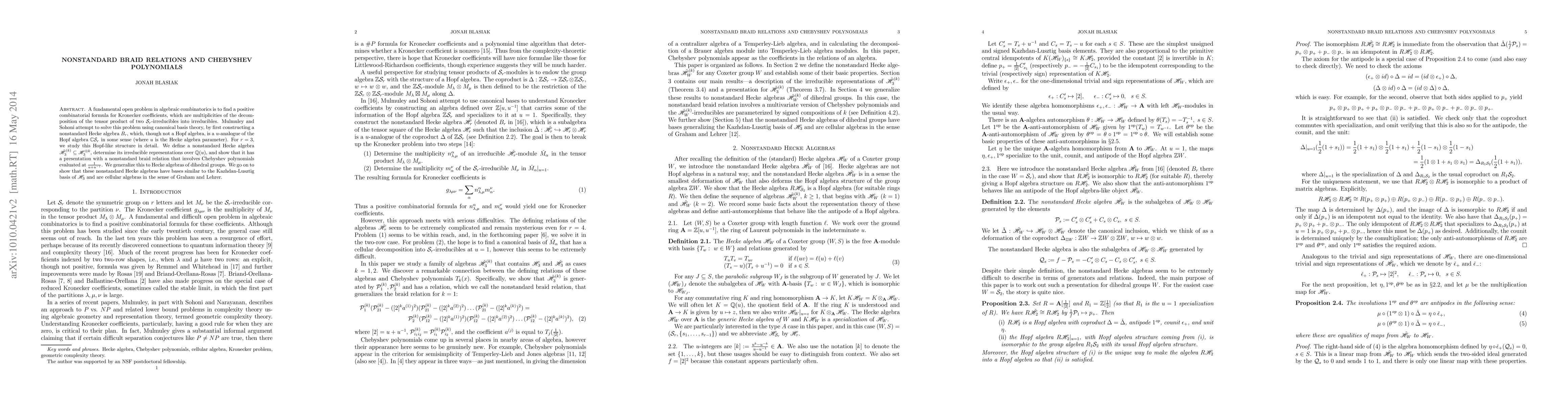 A fundamental open problem in algebraic combinatorics is to find a positive combinatorial formula for Kronecker coefficients, which are multiplicities of the decomposition of the tensor product of two \S_r-irreducibles into irreducibles. Mulmuley and Sohoni attempt to solve this problem using canonical basis theory, by first constructing a nonstandard Hecke algebra B_r, which, though not a Hopf algebra, is a u-analogue of the Hopf algebra \CC \S_r in some sense (where u is the Hecke algebra parameter). For r=3, we study this Hopf-like structure in detail. We define a nonstandard Hecke algebra \bar{\H}^{(k)}_3 \subseteq \H_3^{\tsr k}, determine its irreducible representations over \QQ(u), and show that it has a presentation with a nonstandard braid relation that involves Chebyshev polynomials evaluated at \frac{1}{u + u^{-1}}. We generalize this to Hecke algebras of dihedral groups. We go on to show that these nonstandard Hecke algebras have bases similar to the Kazhdan-Lusztig basis of \H_3 and are cellular algebras in the sense of Graham and Lehrer.