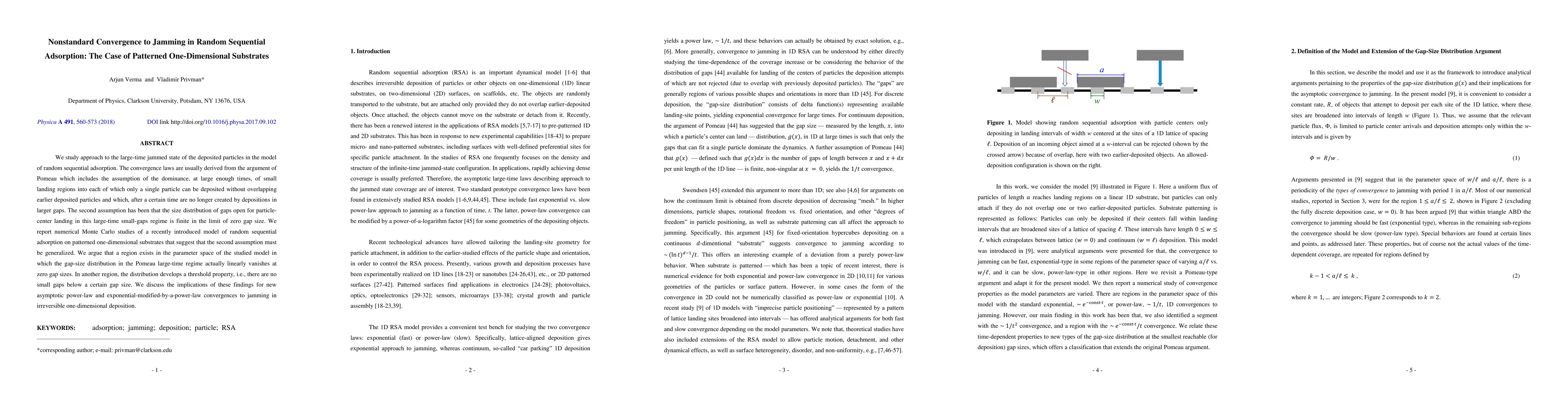 This paper investigates the convergence to jamming in random sequential adsorption on patterned one-dimensional substrates, revealing that traditional assumptions about gap-size distributions must be generalized. The study finds regions where gap sizes vanish linearly or develop a threshold, leading to new asymptotic convergence behaviors.