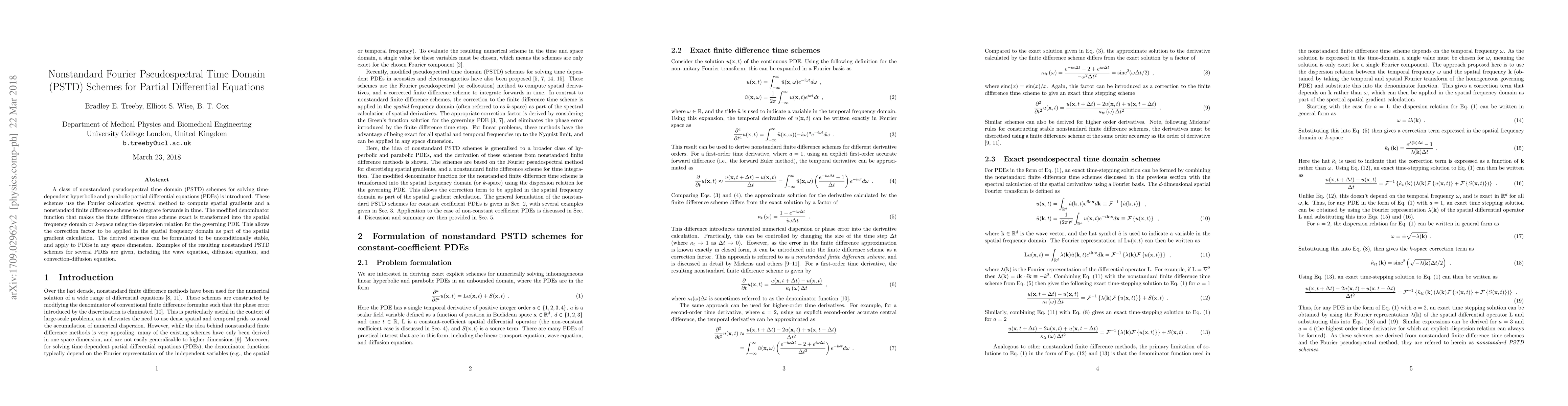 This paper introduces nonstandard pseudospectral time domain (PSTD) schemes for solving time-dependent PDEs using Fourier collocation for spatial gradients and a nonstandard finite difference method for time integration. The schemes are unconditionally stable and apply to various PDEs, including the wave, diffusion, and convection-diffusion equations.
