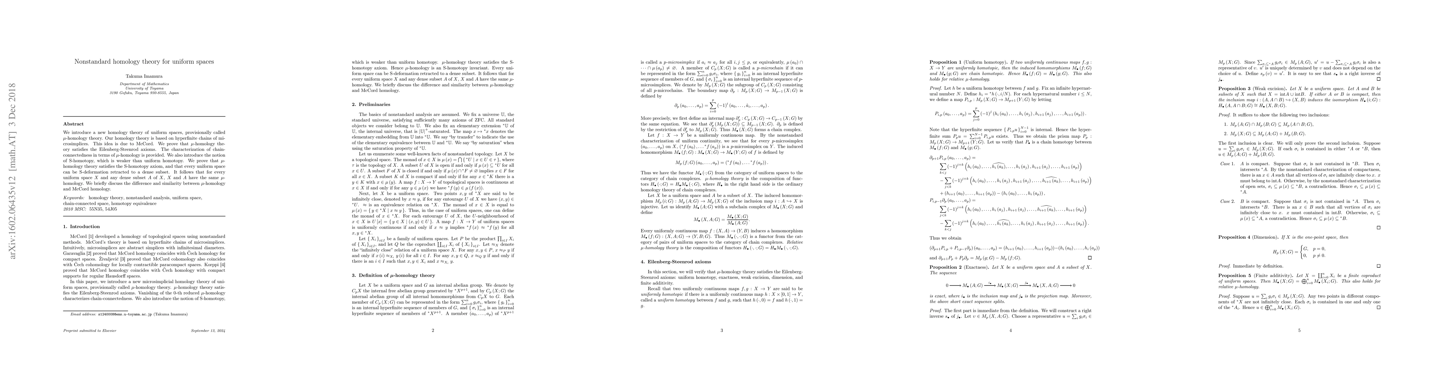 This paper introduces a new homology theory, $\mu$-homology, for uniform spaces based on hyperfinite chains of microsimplices, proving it satisfies Eilenberg-Steenrod axioms and the S-homotopy axiom. It shows that any uniform space can be S-deformation retracted to a dense subset, implying that the $\mu$-homology of a space and a dense subset are the same.