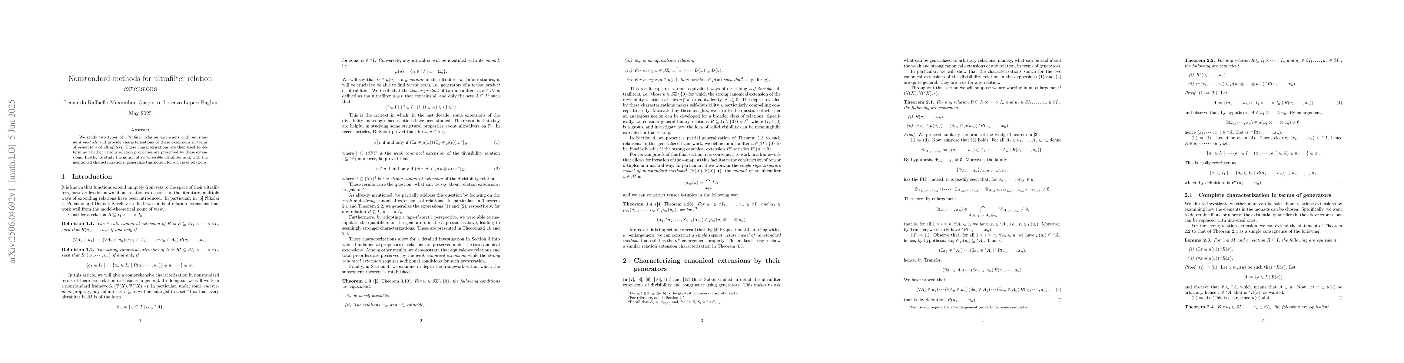 Introduction of novel characterizations for ultrafilter relation extensions using nonstandard methods.