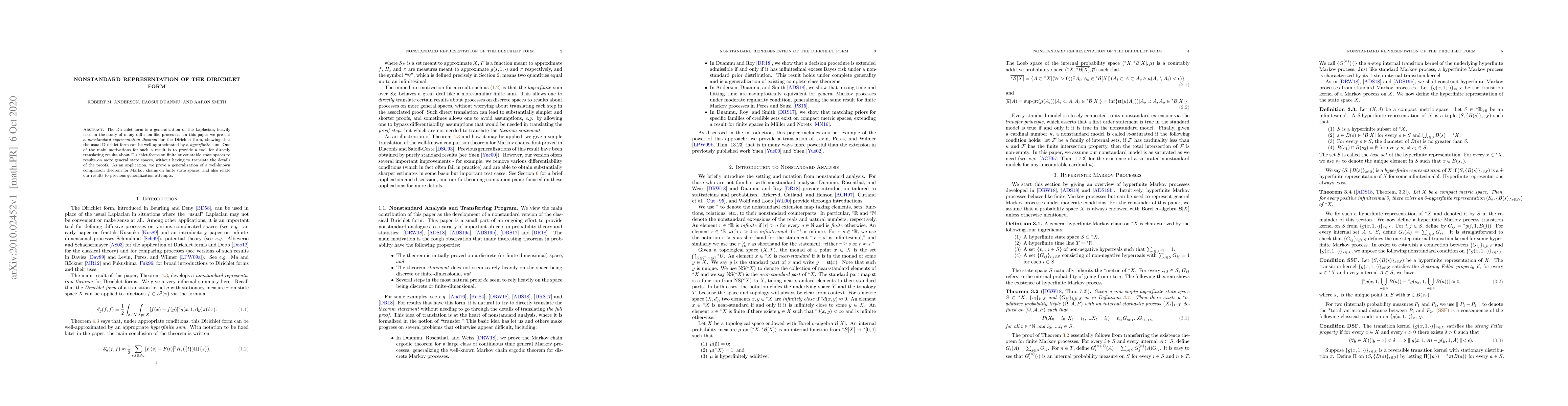 The Dirichlet form is a generalization of the Laplacian, heavily used in the study of many diffusion-like processes. In this paper we present a nonstandard representation theorem for the Dirichlet form, showing that the usual Dirichlet form can be well-approximated by a hyperfinite sum. One of the main motivations for such a result is to provide a tool for directly translating results about Dirichlet forms on finite or countable state spaces to results on more general state spaces, without having to translate the details of the proofs. As an application, we prove a generalization of a well-known comparison theorem for Markov chains on finite state spaces, and also relate our results to previous generalization attempts.