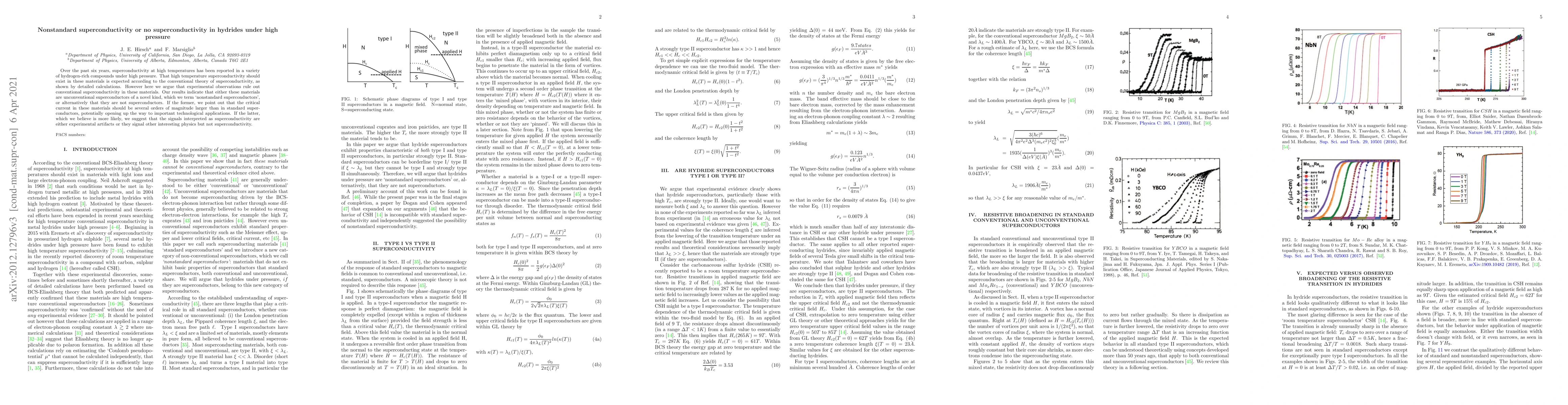 This paper argues that hydrogen-rich compounds under high pressure may not exhibit conventional superconductivity; instead, they could either be unconventional "nonstandard superconductors" or show signals misinterpreted as superconductivity. If they are nonstandard, their critical current would be exceptionally high, suggesting significant technological potential.