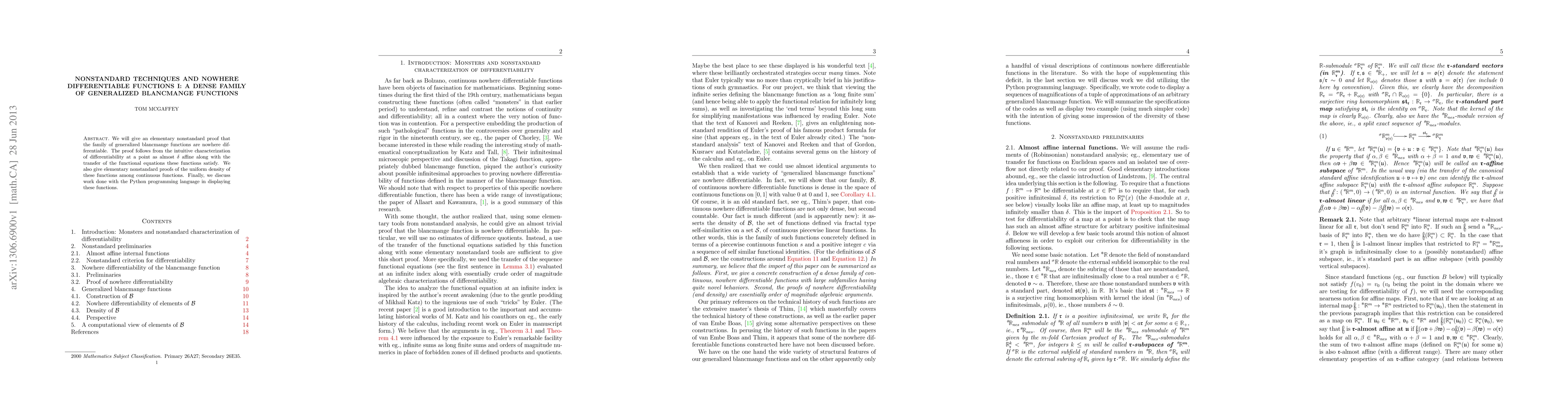 This paper provides an elementary nonstandard proof that generalized blancmange functions are nowhere differentiable, leveraging the intuitive notion of almost $\delta$ affineness. It also demonstrates the uniform density of these functions among continuous functions and showcases their visualization using Python.