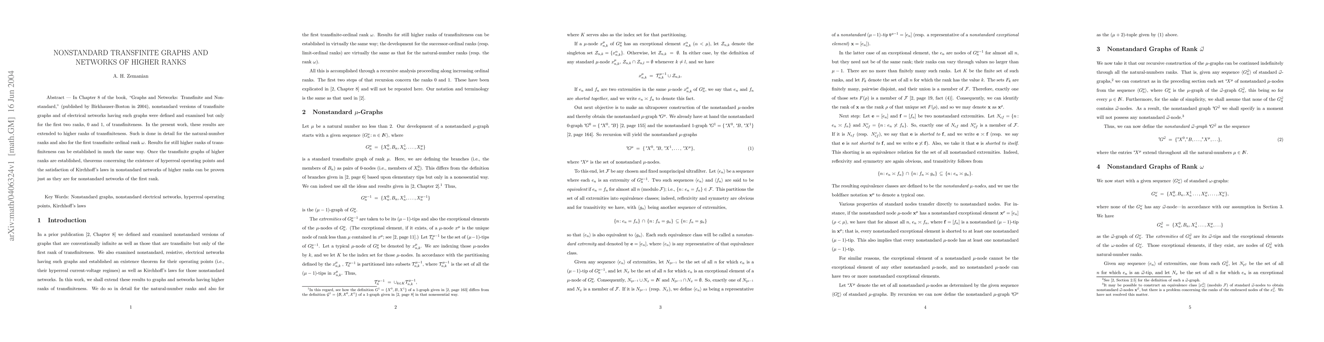 In Chapter 8 of the Book, ``Graphs and Networks: Transfinite and Nonstandard'' (published by Birkhauser-Boston in 2004), nonstandard versions of transfinite graphs and of electrical networks having such graphs were defined and examined but only for the first two ranks, 0 and 1, of transfiniteness. In the present work, these results are extended to higher ranks of transfinteness. Such is done in detail for the natural-number ranks and also for the first transfinite ordinal rank. Results for still higher ranks of transfiniteness can be established in much the same way. Once the transfinite graphs of higher ranks are established, theorems concerning the existence of hyperreal operating points and the satisfaction of Kirchhoff's laws in nonstandard networks of higher ranks can be proven just as they are for nonstandard networks of the first rank.