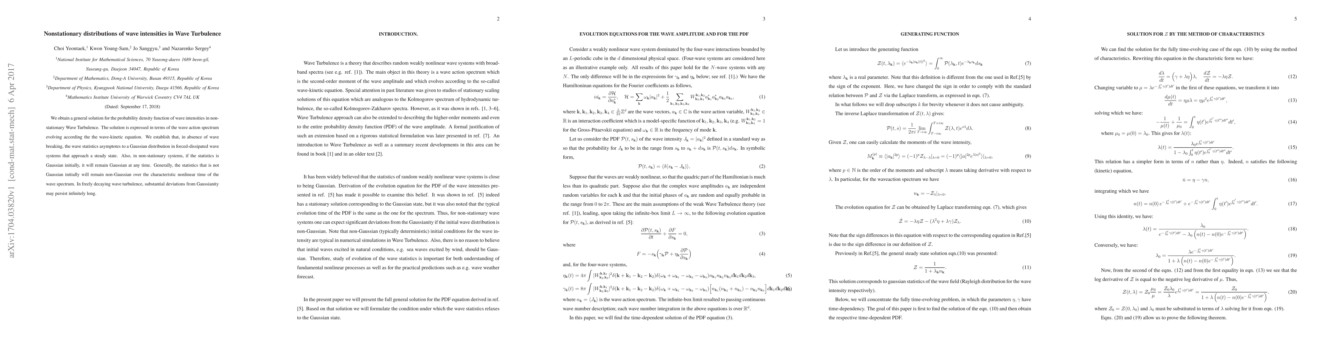 Researchers find that wave intensities in non-stationary turbulence follow a Gaussian distribution under certain conditions, but can remain non-Gaussian over time, depending on initial conditions.