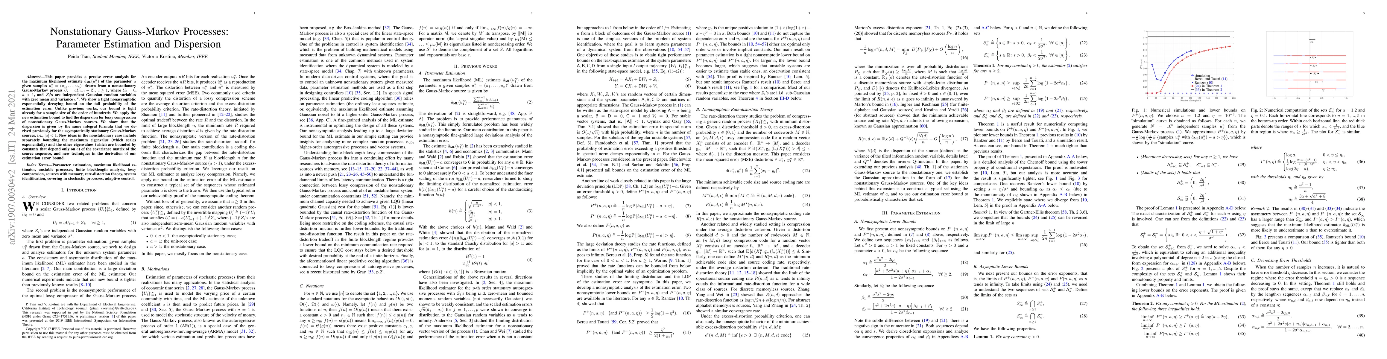 This paper presents a precise error analysis for maximum likelihood estimation of a parameter in nonstationary Gauss-Markov processes, providing a tight nonasymptotic exponentially decaying bound on the estimation error. It also applies this bound to determine the dispersion for lossy compression of such sources, revealing similar integral formulas as for stationary cases.
