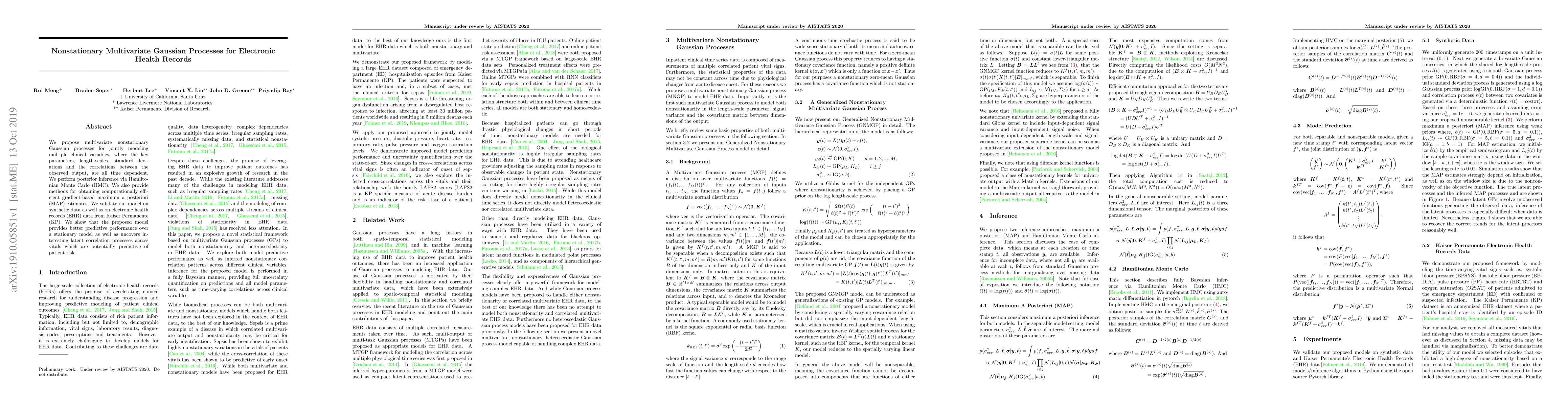 The paper proposes a nonstationary multivariate Gaussian process framework for modeling multiple correlated clinical variables, utilizing both MAP and HMC inference procedures. It's validated on synthetic data and Kaiser Permanente's Electronic Health Records (EHR) data.
