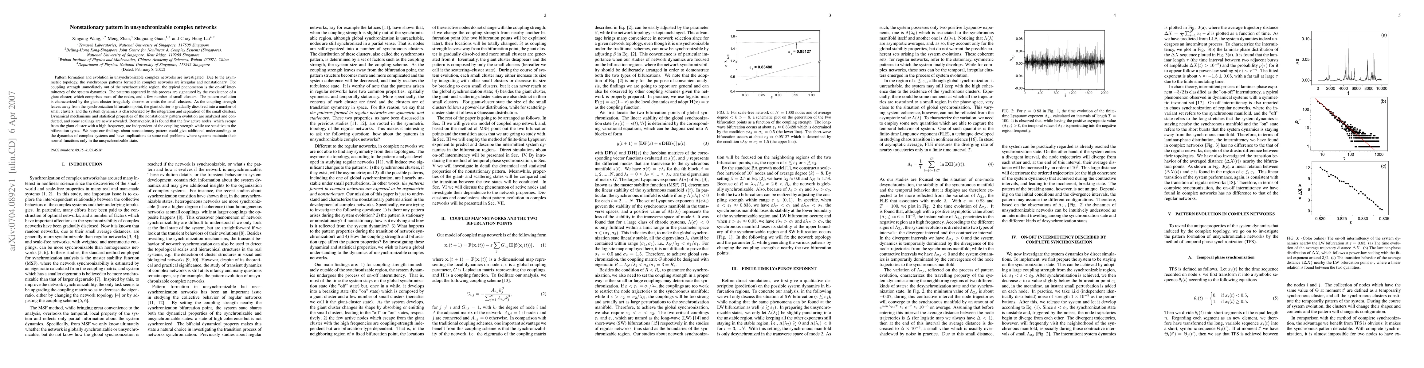 Research investigates pattern formation in unsynchronizable complex networks, revealing nonstationary patterns that evolve through the coexistence of a giant cluster and small clusters, with certain nodes remaining active regardless of coupling strength.