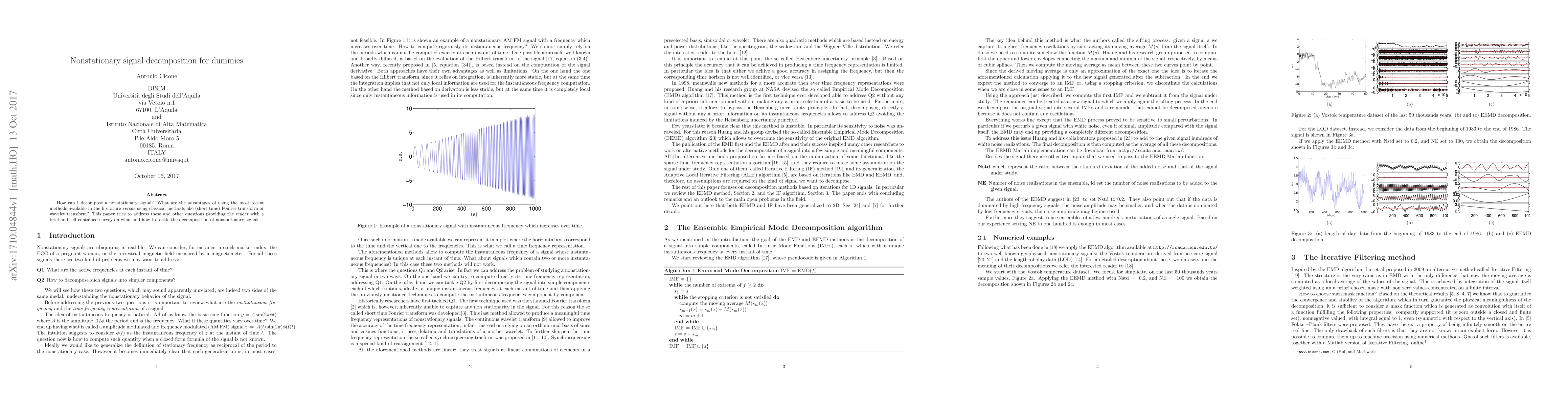 How can I decompose a nonstationary signal? What are the advantages of using the most recent methods available in the literature versus using classical methods like (short time) Fourier transform or wavelet transform? This paper tries to address these and other questions providing the reader with a brief and self contained survey on what and how to tackle the decomposition of nonstationary signals.