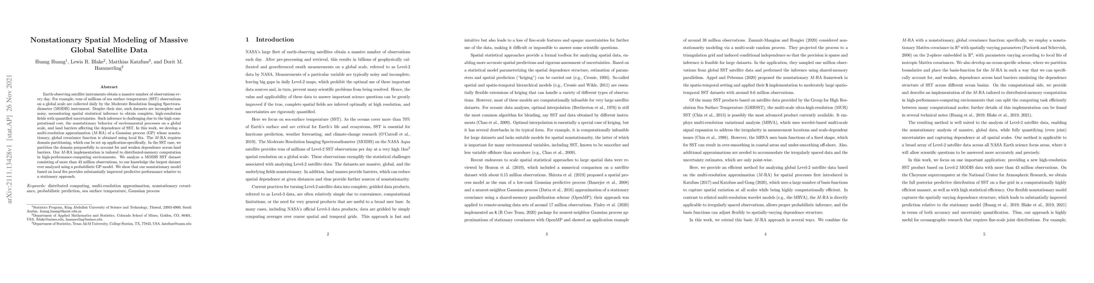 Researchers developed a new spatial modeling technique for analyzing massive global satellite data, improving predictive performance over traditional stationary approaches, using nonstationary Gaussian process models with local fits.