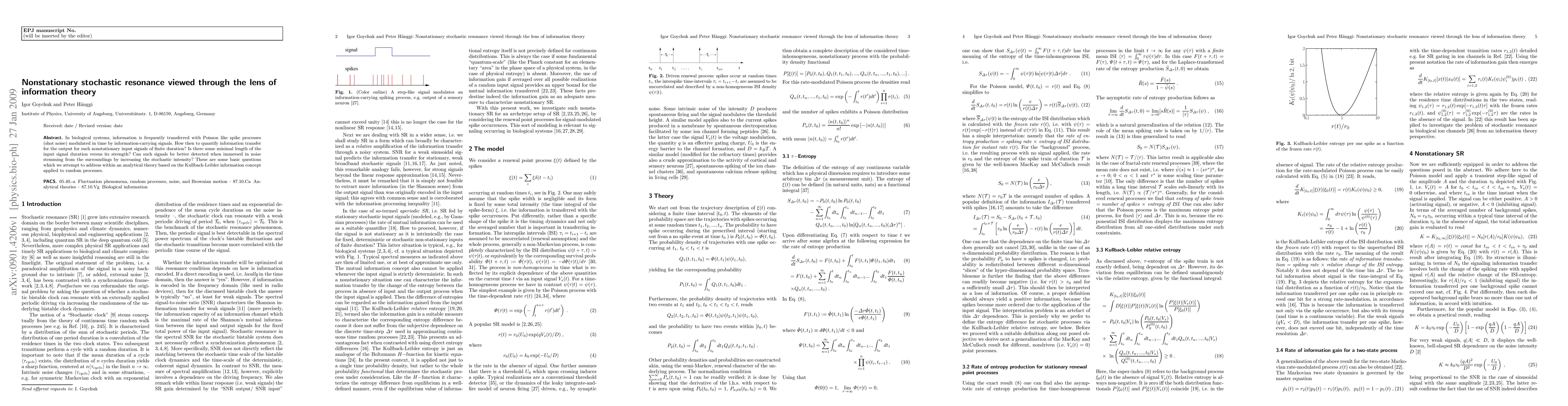 Researchers applied information theory to study nonstationary stochastic resonance in biological systems, exploring how input signal duration affects information transfer and detection in noisy environments.