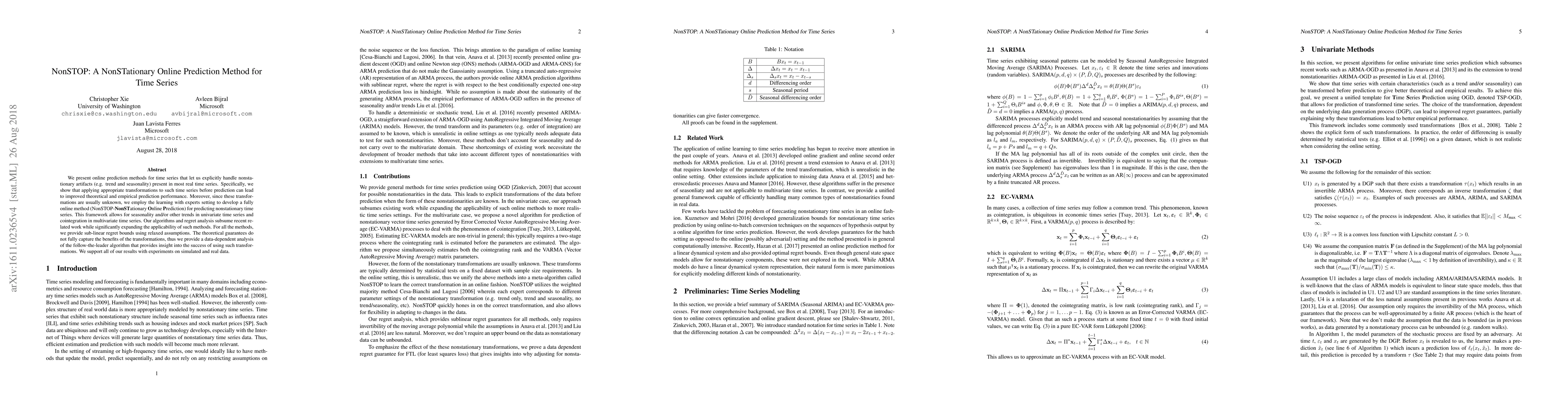 This paper introduces NonSTOP, an online prediction method for nonstationary time series that applies transformations to improve prediction performance. It leverages learning with experts to develop a fully online framework that handles trends and seasonality, providing sub-linear regret bounds and supporting theoretical claims with experiments on both simulated and real data.