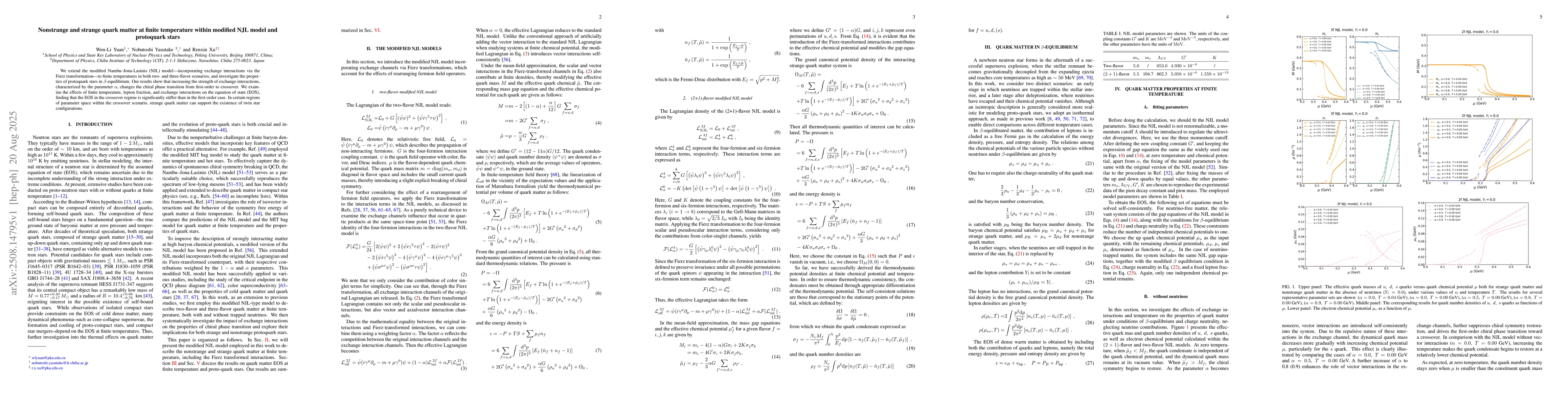 The research extends the modified Nambu-Jona-Lasinio (NJL) model to finite temperatures for both two- and three-flavor scenarios, investigating protoquark stars in β-equilibrium using the Fierz transformation to include exchange interactions. The study examines the effects of finite temperature, lepton fraction, and exchange interactions on the equation of state (EOS).