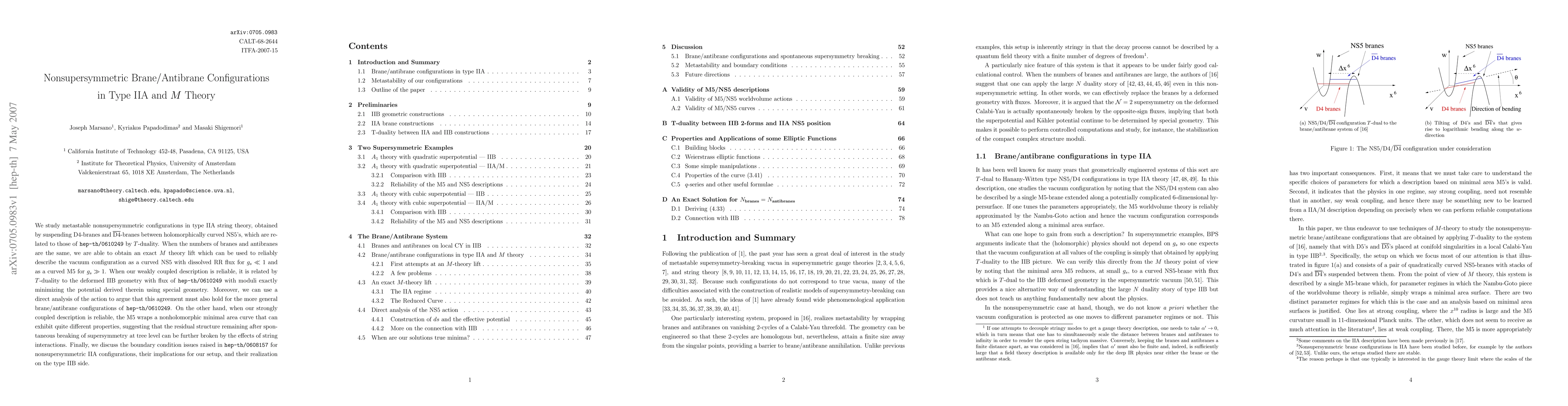 We study metastable nonsupersymmetric configurations in type IIA string theory, obtained by suspending D4-branes and anti-D4-branes between holomorphically curved NS5's, which are related to those of hep-th/0610249 by T-duality. When the numbers of branes and antibranes are the same, we are able to obtain an exact M theory lift which can be used to reliably describe the vacuum configuration as a curved NS5 with dissolved RR flux for g_s<<1 and as a curved M5 for g_s>>1. When our weakly coupled description is reliable, it is related by T-duality to the deformed IIB geometry with flux of hep-th/0610249 with moduli exactly minimizing the potential derived therein using special geometry. Moreover, we can use a direct analysis of the action to argue that this agreement must also hold for the more general brane/antibrane configurations of hep-th/0610249. On the other hand, when our strongly coupled description is reliable, the M5 wraps a nonholomorphic minimal area curve that can exhibit quite different properties, suggesting that the residual structure remaining after spontaneous breaking of supersymmetry at tree level can be further broken by the effects of string interactions. Finally, we discuss the boundary condition issues raised in hep-th/0608157 for nonsupersymmetric IIA configurations, their implications for our setup, and their realization on the type IIB side.