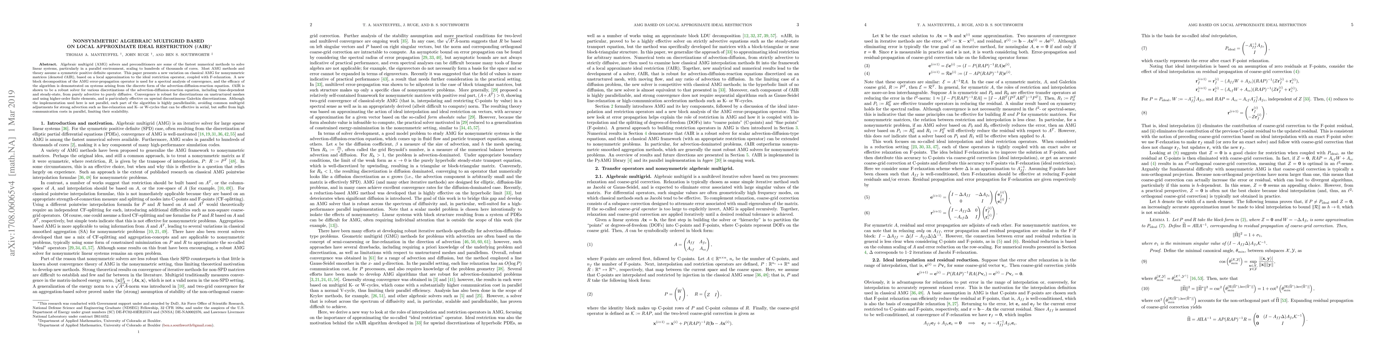 This paper introduces a novel nonsymmetric algebraic multigrid method (lAIR) based on local approximate ideal restriction for solving linear systems arising from advection-diffusion-reaction equations. The method demonstrates robust convergence on unstructured meshes and higher-order finite elements, especially for upwind discontinuous Galerkin discretizations, while being highly parallelizable.