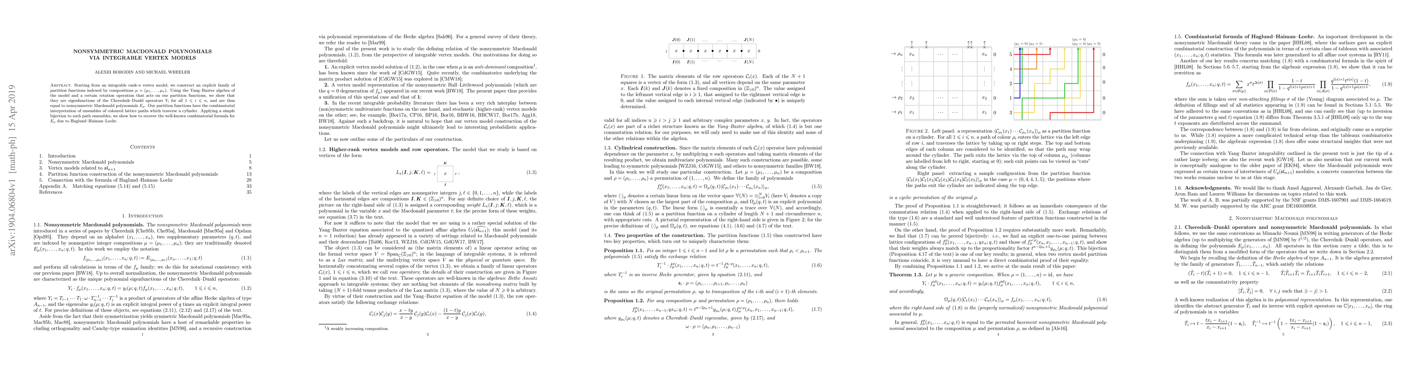 Starting from an integrable rank-$n$ vertex model, we construct an explicit family of partition functions indexed by compositions $\mu = (\mu_1,\dots,\mu_n)$. Using the Yang-Baxter algebra of the model and a certain rotation operation that acts on our partition functions, we show that they are eigenfunctions of the Cherednik-Dunkl operators $Y_i$ for all $1 \leq i \leq n$, and are thus equal to nonsymmetric Macdonald polynomials $E_{\mu}$. Our partition functions have the combinatorial interpretation of ensembles of coloured lattice paths which traverse a cylinder. Applying a simple bijection to such path ensembles, we show how to recover the well-known combinatorial formula for $E_{\mu}$ due to Haglund-Haiman-Loehr.