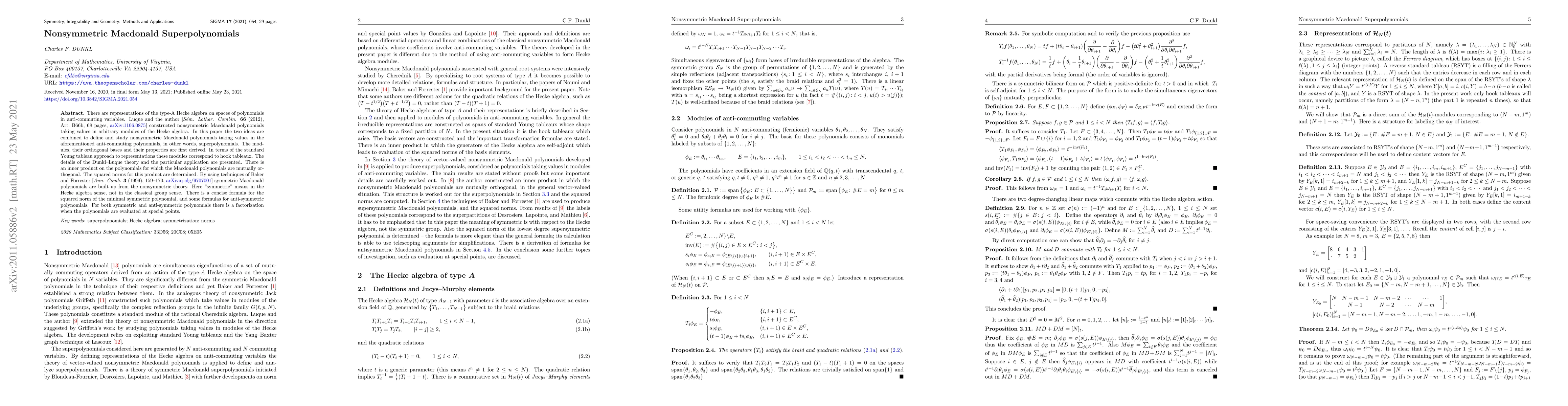 This paper defines and studies nonsymmetric Macdonald superpolynomials, combining representations of the type-A Hecke algebra with anti-commuting variables. It derives modules, orthogonal bases, and properties, revealing connections to hook tableaux via Young tableaux, and determines squared norms for an inner product. Techniques from symmetric Macdonald polynomials are used to build symmetric versions from the nonsymmetric theory, with specific formulas for norms and factorizations at special points.