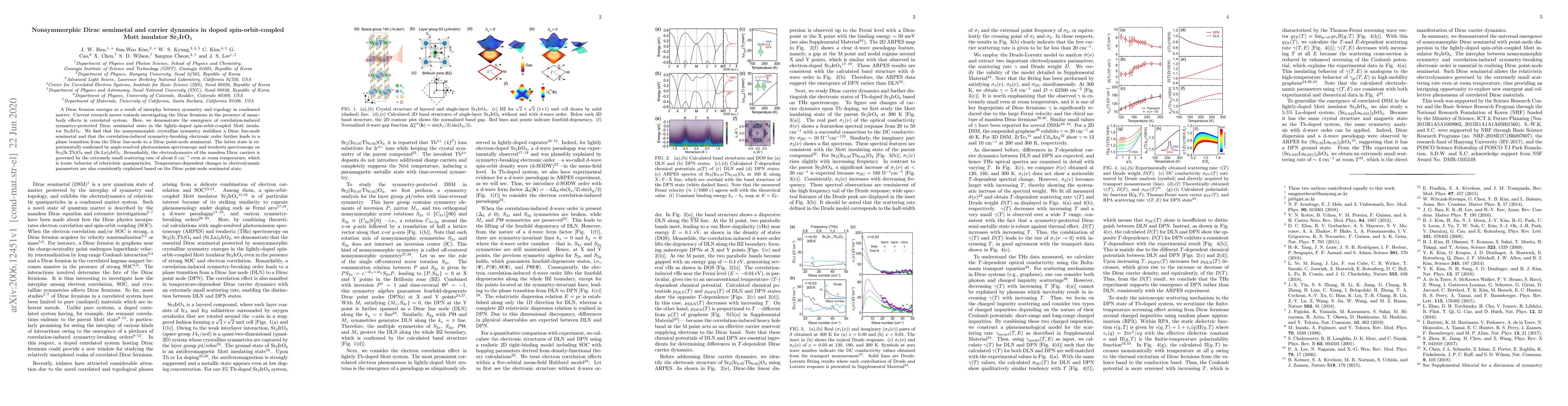 A Dirac fermion emerges as a result of interplay between symmetry and topology in condensed matter. Current research moves towards investigating the Dirac fermions in the presence of manybody effects in correlated system. Here, we demonstrate the emergence of correlation-induced symmetry-protected Dirac semimetal state in the lightly-doped spin-orbit-coupled Mott insulator Sr$_2$IrO$_4$. We find that the nonsymmorphic crystalline symmetry stabilizes a Dirac line-node semimetal and that the correlation-induced symmetry-breaking electronic order further leads to a phase transition from the Dirac line-node to a Dirac point-node semimetal. The latter state is experimentally confirmed by angle-resolved photoemission spectroscopy and terahertz spectroscopy on Sr$_2$(Ir,Tb)O$_4$ and (Sr,La)$_2$IrO$_4$. Remarkably, the electrodynamics of the massless Dirac carriers is governed by the extremely small scattering rate of about 6 cm$^{-1}$ even at room temperature, which is iconic behavior of relativistic quasiparticles. Temperature-dependent changes in electrodynamic parameters are also consistently explained based on the Dirac point-node semimetal state.
