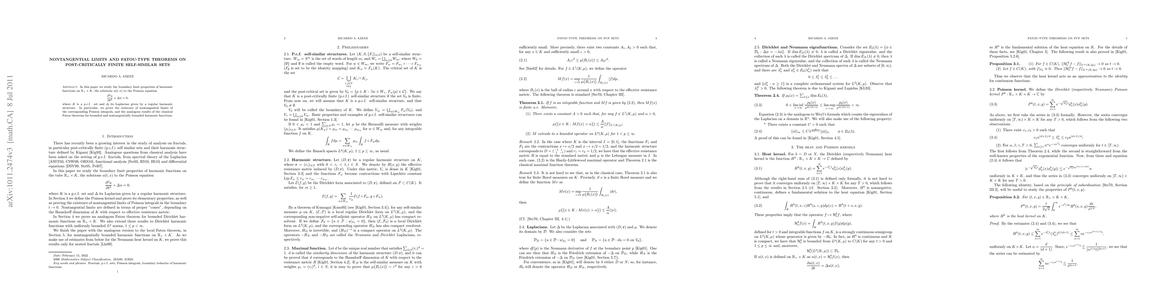 In this paper we study the boundary limit properties of harmonic functions on $\mathbb R_+\times K$, the solutions $u(t,x)$ to the Poisson equation \[ \frac{\partial^2 u}{\partial t^2} + \Delta u = 0, \] where $K$ is a p.c.f. set and $\Delta$ its Laplacian given by a regular harmonic structure. In particular, we prove the existence of nontangential limits of the corresponding Poisson integrals, and the analogous results of the classical Fatou theorems for bounded and nontangentially bounded harmonic functions.