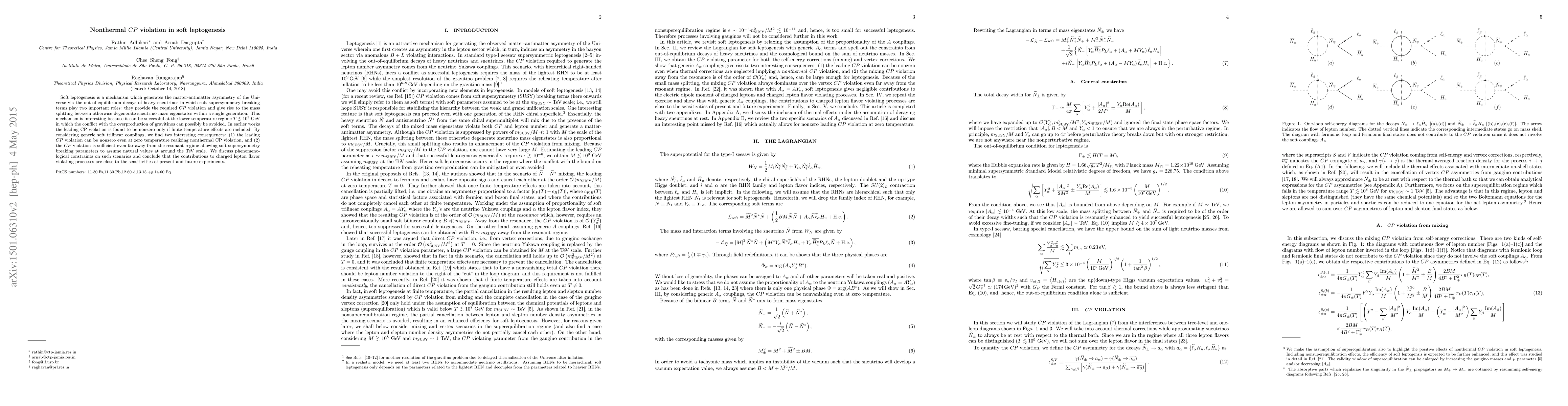 This paper explores soft leptogenesis, a mechanism generating the Universe's matter-antimatter asymmetry through heavy sneutrino decays, emphasizing nonthermal $CP$ violation at lower temperatures. It finds that soft supersymmetry breaking terms can provide sufficient $CP$ violation and mass splitting without requiring finite temperature effects, allowing for natural values of TeV-scale parameters.
